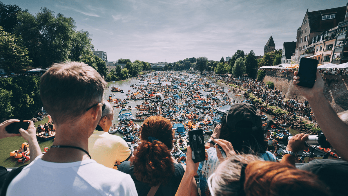 Nadada = die Donau hinunter baden und ist der traditionelle Wasserumzug am Schwörmontag. Von der Illerbrücke bis in die Friedrichsau kann man Themenboote, Floße, Schlauchbote uvm. bei einer Wasserschlacht zuschauen oder sich selbst ins kühle Nass wagen. Nach der traditionellen Schwörfeier (11 Uhr) auf dem Weinhof am Vormittag des ›Schwörmontags‹ findet am Nachmittag das ›Nabada‹ statt. Ab ca. 16 Uhr beginnt der bunte Wasserfestzug auf der Donau (übrigens, ›Nabada‹ bedeutet die Donau hinunterbaden). Mehrere Themenboote, von Vereinen und anderen Gruppen ähnlich wie beim rheinischen Karneval aufwendig und mit viel Liebe gestaltet, nehmen die aktuelle Politik aufs Korn. Begleitet werden die Themenboote von schunkelnden Schiffen mit Musikkapellen, die stimmungsvoll Lieder zum besten geben (denn schließlich wählen die Zuschauer per Stimmzettel den besten Musikact). Neben den offiziellen Themenbooten stürzen sich aber auch jede Menge wilde ›Wasserratten‹ mit den abenteuerlichsten, eigenen Konstruktionen ins kühle Nass und paddeln die ca. 7 km lange Strecke die Donau hinunter. Der feucht-fröhliche Tagesausklang findet in der Friedrichsau und auf vielen Plätzen der Innenstadt und Altstadt bei Live-Musik und Party statt.