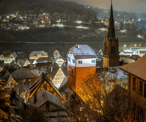 Lassen Sie sich von einem unserer Stadtführer die geschmückten Gassen der Hermann Hesse-Stadt zeigen und entdecken Sie herrliche Ausblicke auf einen der schönsten Weihnachtsmärkte. Wenn stimmungsvolle Lichter die verwinkelten Gassen der Stadt erleuchten und die weihnachtlich geschmückten Stände den besonderen Duft von Apfel, Zimt, Glühwein und süßem Backwerk verströmen, ist die Zeit des märchenhaften Weihnachtsmarktes in Calw gekommen. Stimmen Sie sich ein auf die gefühlvollste Zeit des Jahres - bei einem geführten weihnachtlichen Stadtspaziergang. Lassen Sie sich beglücken von einem malerischen Ausblick auf die pittoreske Altstadt mit ihrer entzückend illuminierten Fachwerkkulisse, die ihresgleichen sucht. Eine Anmeldung ist nicht erforderlich!