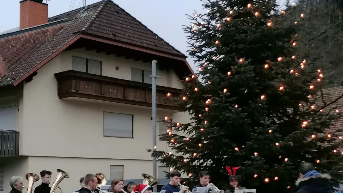 Am Heiligabend veranstaltet die Bläserjugend Oberwinden und Musikkapelle Oberwinden beim Rathaus in Oberwinden "Weihnachtslieder unter dem Christbaum" . Alle sind herzlich dazu eingeladen. **Weihnachtslieder unter dem Christbaum an Heilig Abend** Zur Einstimmung auf die bevorstehenden Feiertage spielt das Blechbläserensemble der Musikkapelle Oberwinden e.V. auch in diesem Jahr an Heilig Abend wieder Weihnachtslieder unter dem Christbaum am Rathausplatz in Oberwinden. Wir laden Sie herzlich ein, am 24. Dezember im Anschluss an die Kinderkrippenfeier (ca. 16:00 Uhr) bei Glühwein oder Punsch mit der Familie, Freunden und Bekannten bei besinnlicher Weihnachtsmusik anzustoßen. Ihnen allen wünschen wir eine schöne Adventszeit und gesegnete Weihnachtsfeiertage, verbunden mit einem herzlichen Dankeschön für Ihre Besuche und Ihre Unterstützung im vergangenen Jahr. Ihre Bläserjugend Oberwinden e.V. und Musikkapelle Oberwinden e.V.