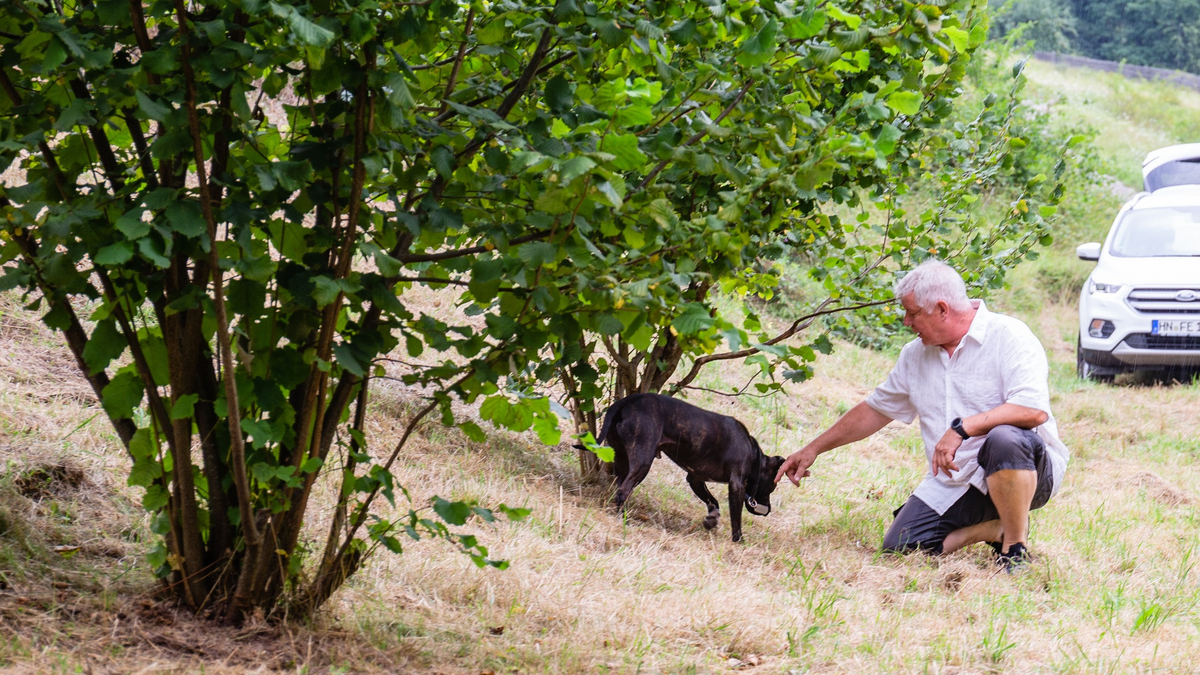 Die Faszination Trüffel live erleben - Führung mit Trüffelhund durch eine Trüffelplantage mit Verkostung. Erlebe die Faszination Trüffel - Informationen zum Thema und Vorkommen, ein Blick ins Mikroskop, Führung über die Trüffelplantage, Verkostung von getrüffelten Produkten (z.B. Trüffelbutter) & die Arbeit mit dem Trüffelhund. Der Einblick in die Faszination Trüffel startet mit einem kleinen Bildervortrag im Eventraum der Manufaktur für Feines in Beilstein-Etzlenswenden. Michael Mörsel hält spannende Informationen und Wissenswertes über die spezielle Knolle parat und präsentiert aktuelle Fundstücke. Hier berichtet der Trüffelbauer selbst von seinen Erfahrungen.   Nach der Theorie folgt die Praxis. Nur rund 500m sind es zu Fuß zur Trüffelanlage und man steht sozusagen auf "getrüffeltem Boden". Während dem Spaziergang durch die Trüffelplantage erleben die Teilnehmer den (Trüffel-)Hund live bei der Arbeit - die Suche nach dem Pilz beginnt. Und wenn alles klappt, können die Teilnehmen einen ersten eigenen Trüffel auch selbst "remontieren" - wie der Fachmann das Ausgraben der Trüffel nennt. ### inkludierte Leistungen - Vortrag und Führung über eine Trüffelplantage - Verkostung von getrüffelten Produkten (z.B. Trüffelbutter) - Arbeit mit dem Trüffelhund ### Hinweise & Informationen Dauer: 2,25 - 2,5 Stunden - Treffpunkt: an der Brennerei Manufaktur für Feines um 13.50 Uhr - Maximalteilnehmerzahl: 14 Personen  - individuelle Terminvereinbarung für Gruppen ab 10 Personen - zwischen August und Oktober einige offene Termine für Kleingruppen und Einzelpersonen #### Preise 2026 pro Person 25,00 €  ### Zusatzangebot Mit Vorbestellung können Teilnehmer der Führung anschließend den frisch gefundenen Trüffel sofort auf einem Teller mit frischer Pasta genießen, gerne auch mit einem Glas Wein **Preis pro Person / Teller 19.50.- Euro**