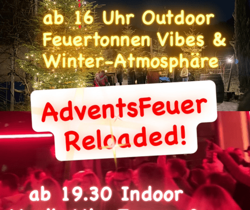 23.12. – AdventsFeuer Reloaded! Dieses Jahr bei Weingut Knauß – mehr Platz, mehr Vibes, mehr Stimmung! ab 16 Uhr draußen: Feuer-Tonnen-Vibes & Winter-Atmosphäre ab 19.30 Uhr drinnen: Music Mix, Tanzen & Aussicht deluxe Tanzt mit uns in die Feiertage. AdventsFeuer – Reloaded! Am 23. Dezember feiern wir wieder – nur diesmal bei Weingut Knauß – mehr Platz, mehr Vibes, mehr Stimmung! Unser traditionelles Adventsfeuer zieht nämlich um und findet dieses Jahr gemeinsam mit dem Weingut Knauß direkt bei Knauß am Weingut statt. Draußen gibt’s wie immer ab 16 Uhr: Feuer-Tonnen-Vibes & Winter-Atmosphäre, Glühwein & Wein, Rote Wurst vom Grill Drinnen ab 19.30 Uhr: Music Mix, Tanzen & Aussicht deluxe. Perfekt, um zusammen in die Feiertage reinzutanzen. Kommt vorbei, wir machen’s gemütlich – und danach richtig nice. Tanzt mit uns in die Feiertage.