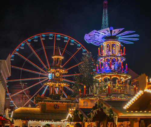 Der Karlsruher Christkindlesmarkt hat eine lange Tradition und begeistert jährlich zahlreiche Besucherinnen und Besucher. Mit festlicher Atmosphäre auf dem Marktplatz und dem Friedrichsplatz wird die Innenstadt zum Wintermärchen. Der Karlsruher Christkindlesmarkt lädt vom 23. November bis zum 23. Dezember 2026 im Herzen der Stadt – auf dem Marktplatz , auf dem Friedrichsplatz , und dem Kinderland auf dem Kirchplatz St. Stephan – zum Entdecken und Genießen ein. Auf der Lichtweihnacht auf dem Marktplatz erwartet die Besucherinnen und Besucher rund um die Pyramide ein ganz besonderes Programm mit liebevoll geschmückten Ständen. In den Gemeinschaftshütten auf dem Marktplatz präsentieren sich wechselnde Kunsthandwerkerinnen und Kunsthandwerker mit selbstgefertigtem Angebot. Die festlich geschmückten Giebelhäuschen in der romantischen Waldweihnacht auf dem Friedrichsplatz verführen die Besucherinnen und Besucher mit deftigen und süßen Spezialitäten aus aller Welt. Die überdachten Sitzgelegenheiten des „Karls-Ruhe-Plätzles“ laden zum gemütlichen Verweilen ein. Das Riesenrad Genieße in den geschlossenen Gondeln des Riesenrads, auch bei Wind und Wetter, hoch über den Dächern der Stadt, den herrlichen Blick auf die WEIHNACHTSSTADT Karlsruhe. Alle Gondeln sind barrierefrei zugänglich. Der fliegende Weihnachtsmann Täglich schwebt Hochseilartist Falko Traber alias der „Fliegende Weihnachtsmann“ um 17:00 und 19:30 Uhr in luftiger Höhe mit seinem Rentierschlitten über den Marktplatz. Mehr Informationen und das gesamte Programm der WEIHNACHTSSTADT Karlsruhe findest Du unter www.karlsruhe-erleben.de/weihnachtsstadt/christkindlesmarkt .