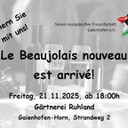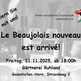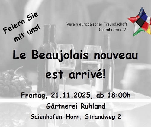 Auch in diesem Jahr wollen wir die langjährig gepflegte Tradition fortführen und den neuen Beaujolais im Rahmen eines von französischer Lebensart geprägten Abends bei uns zu begrüßen. Für die musikalische Unterhaltung haben wir uns „was Neues“ einfallen lassen und aus der Normandie den außergewöhnlichen französischen Musiker Gérard Viel mit traditionellen Balladen und bekannten Chansons engagiert. Er nimmt uns mit auf eine musikalische Reise in verschiedenen Regionen Frankreichs, aus denen er interessante Geschichten mitgebracht hat, mündlich überlieferte Geschichten, die die Zeit überdauert haben. Er interpretiert eigene Kompositionen und Texte, aber auch bekannte Chansons. Mit traditionellen Saiteninstrumenten und verschiedenen Gitarren, denen er bezaubernde Melodien entlockt, begleitet er seinen ausdrucksstarken Gesang. Für den köstlichen Wein sorgt wie immer Manuela Griß vom Wiischöpfle, leckerer Zwiebelkuchen und Quiche werden von der Konditorei Rosen angeboten. Der Eintritt ist frei! Sie zahlen lediglich für Speisen und Getränke. Wir bitten aber um eine angemessene Spende. Auch wenn es „gemütlich“ werden soll, ist die Anzahl der Plätze begrenzt. Bitte reservieren Sie daher rechtzeitig per mail oder telefonisch bei Ina Frantzen unter beaujolais@vef-gaienhofen.eu oder 07735 3481.