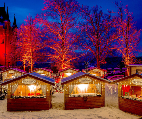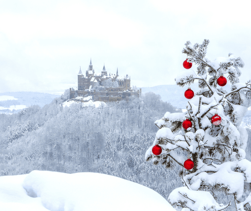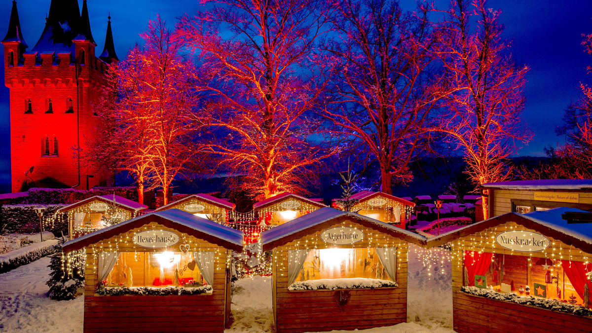 Mit zauberhaften Illuminationen, aufwändigen Dekorationen und einem weihnachtlichen Programm wartet die Burg Hohenzollern vom 21. November 2025 bis 6. Januar 2026 zum Königlichen Winterzauber auf. Der Königliche Winterzauber ist kein Weihnachtsmarkt, sondern eine aufwändig gestaltete Sonderausstellung. Statt Buden-Charme und Gedränge bietet er weihnachtliche Atmosphäre in historischem Ambiente. Im Grafensaal erwartet die Besucher eine zwölf Meter lange Tafel mit kaiserlichem Service, flankiert von einem sieben Meter hohen Christbaum. Und auch die anderen Gemächer, die die Besucher nach Belieben erkunden können, werden zauberhaft dekoriert sein. Mit Einbruch der Dämmerung beginnen die Illuminationen auf den Fassaden im Burghof. Dazu lässt der Hofgaukler Seifenblasen in den Nachthimmel steigen. Hin und wieder schaut auch der Nikolaus vorbei. Das Burgrestaurant verwöhnt mit winterlichen Spezialitäten und im Burggarten können sich Kleingruppen in den Themenhütten bewirten lassen. Zudem gibt es Kaffee und Kuchen auf Spendenbasis im Café Kira im dritten Stock. Tickets Eintrittskarten für den Winterzauber gibt es im Online-Ticket-Portal auf www.burg-hohenzollern.com in einer begrenzten Anzahl pro Tag. Die Tickets beinhalten auch die Gebühren für den Parkplatz und für den Shuttlebus, der zwischen Parkplatz und Burgeingangstor pendelt. Tickets an der Tageskasse gibt es nur nach Verfügbarkeit. Es wird empfohlen, nur mit Online-Ticket anzureisen.