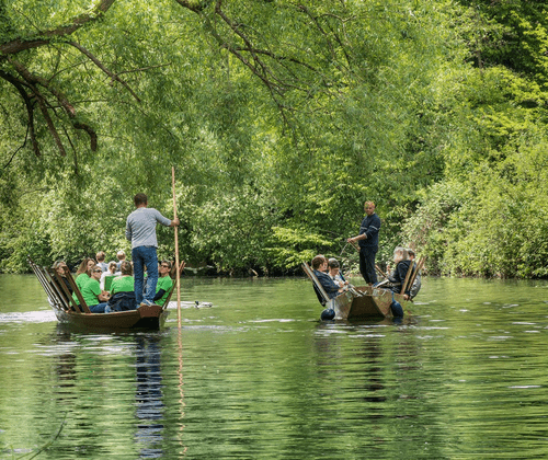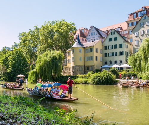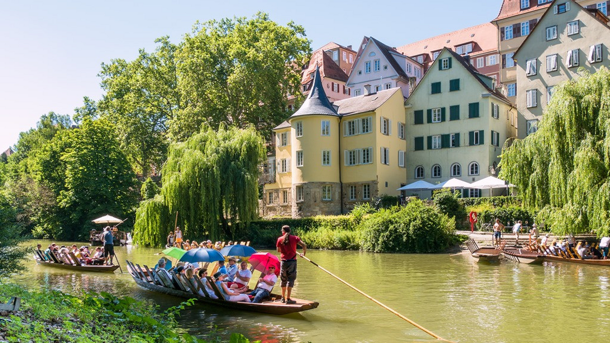 Was wäre die alte Universitätsstadt Tübingen ohne ihre Stocherkähne? Sie gehören an der Anlegestelle vor dem Hölderlinturm und auf dem Neckar zum Stadtbild und sind bis heute allgemeines Kulturgut. Man sitzt sich zu mehreren gegenüber, lehnt sich entspannt zurück, „schwätzt“ miteinander und genießt die bedächtige Fahrt durch das üppige Ufergrün entlang der romantischen Neckarfront und rund um die Neckarinsel. Stocherkahnfahren hat etwas zutiefst Entschleunigendes. Lange war das Kahnfahren nur jenen vorbehalten, die wie die Tübinger Studentenverbindungen eigene Kähne besaßen. Heute genießen alle (dank des Bürger- und Verkehrsvereins Tübingen) das Erlebnis einer Fahrt entlang der großen Sehenswürdigkeiten Tübingens. Unter uns: Wir Tübinger würden unser liebstes Freizeitvergnügen niemals nur Gästen überlassen. Wir genießen selbst oft und ausgiebig eine gemütliche Fahrt in guter Gesellschaft rund um die Neckarinsel. Steigen Sie also ein und finden Sie heraus, warum wir dieses Vergnügen gerne mit Ihnen teilen! Ein Sahnehäubchen obendrauf? Buchen Sie sich eine feuchtfröhliche Weinprobe oder eine romantische Lichterfahrt am Abend. Probieren Sie es aus! Stocherkahnfahren ist und bleibt ein unvergessliches und heiteres Tübingenvergnügen!