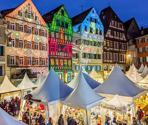 Schokolade verbindet – und genau das macht die Tübinger chocolART zu einem unvergesslichen Erlebnis! Vom 2. bis 7. Dezember 2025 verwandelt sich die historische Altstadt in ein Paradies für Schokoladenliebhaber. Rund 90 exklusive Chocolatiers und Manufakturen aus aller Welt präsentieren ihre feinsten Kreationen – von Italien über Belgien bis nach Ecuador und Peru. Die weißen Pagodenzelte und ihr süßer Inhalt machen Tübingen sechs Tage zum schönsten Mittelpunkt des Genusses. Schokoladenliebhaber aus nah und fern lassen sich verzaubern, folgen den sahnig-herben Düften und begeistern sich für schokoladige Besonderheiten. Im chocolateROOM auf dem Marktplatz entstehen live filigrane Schokokunstwerke, darunter der beliebte Tübinger Schokoschaumkuss chocoLINO. Schokoladenkunst hautnah erleben? Das geht auch bei Dorte Schetters Kakaomalerei, wo Tradition auf Kreativität trifft. Die Projektionskünstler des Tübinger Lichtkunstateliers „leucht-werk“ sorgen für eine märchenhafte Altstadt-Beleuchtung. Die Fassaden verwandeln sich durch kunstvolle Illuminationen in eine traumhafte Kulisse. Di 13–20 Uhr / Mi bis Fr 10–20 Uhr / Sa 10-22 Uhr / So 11-18 Uhr Mit dem Sondertagesticket können (Mo – Fr ab 8:30 Uhr, sonst ganztägig) bis zu 5 Personen um ca.30 % günstiger als mit dem Tagesticket Gruppe bis Betriebsschluss im Stadtgebiet Tübingen unterwegs sein. An den ticketfreien Samstagen sind Fahrten innerhalb des Stadtgebietes Tübingens auf allen TüBus-Linien, der Ammertalbahn und den Linien 826/828 von 0.00 Uhr bis Sonntag 5.00 Uhr kostenlos. An diesem Tag brauchen Fahrgäste, die die ticketfreien Linien nutzen, kein Sondertagesticket zu lösen.