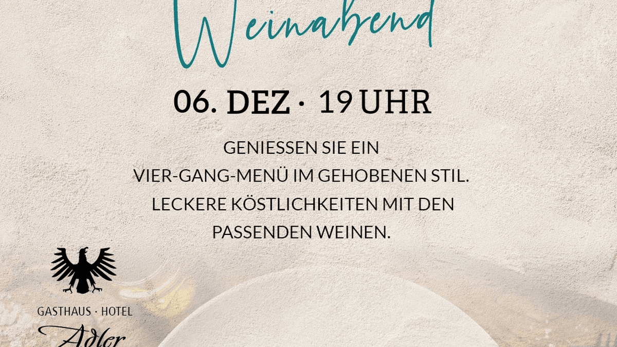 Leckere Köstlichkeiten mit den passenden Weinen genießen. Im Dezember wird wieder geschlemmt! Freuen Sie sich auf einen festlichen Abend voller Genussmomente: Das Gasthaus Adler aus Botenheim verwöhnt Sie mit kreativen und fein abgestimmten Speisen. Edle Tropfen aus Holz- und Barriquefässern begleiten jedes Gericht und machen den Abend zu einem kulinarischen Highlight. Genießen Sie den Abend in gemütlicher Atmosphäre und vergessen Sie für ein paar Stunden den Weihnachtsstress. #### Weitere Informationen: - Beginn 19 Uhr, Einlass 18.45 Uhr - Kosten: 119 €/Person - Buchung unter: [Wine & Dine](https://weinkonvent-duerrenzimmern.de/wine-dine-5.-dezember-2026/00419)