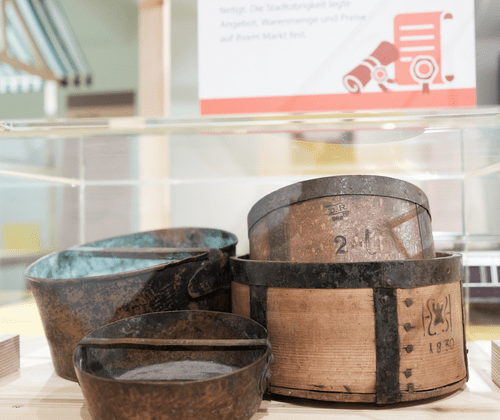 Aktuelle Sonderausstellung im Museum Humpis-Quartier: Schon immer fresh! Der Ravensburger Wochenmarkt 26. September 2025 bis 28. Juni 2026 Der Ravensburger Samstagsmarkt ist eine Attraktion: Er ist nicht nur Nahversorger für frisches Obst und Gemüse aus der Region, sondern auch Treffpunkt und Ritual, ein Ort für Debatten und Kundgebungen, manchmal sogar selbst ein Politikum – ein städtisches Kulturgut eben. Daher widmet das Museum Humpis-Quartier der Geschichte und Gegenwart des Marktes eine Ausstellung unter dem Titel "Schon immer fresh! Der Ravensburger Wochenmarkt". Die Ausstellung blickt auf über 870 Jahre Marktgeschichte in Ravensburg. Erste schriftliche Quellen zeugen von den Anfängen in der oberen Marktstraße und am Gänsbühl im 12. Jahrhundert. Die Ausstellung zeigt, wie sich der Markt im 14. Jahrhundert gemeinsam mit der Stadt ausweitete und sich in Richtung des heutigen Marienplatzes verschob. Dort entstanden mit dem Korn-, Waag- und Lederhaus, sowie dem neu erbauten Rathaus die zentralen Markthäuser, die das Stadtbild bis heute prägen. Bis ins 20. Jahrhundert dehnte sich der Wochenmarkt mit dem Korn-, Vieh- und Pferdemarkt über viele Straßen und Plätze der Altstadt aus und blieb lange der wichtigste Ort für die Versorgung mit Waren für den täglichen Bedarf. Die Ausstellung bezieht aber auch die Gegenwart mit ein und zeigt die Arbeit der heutigen Marktbeschicker innen vom Acker bis zum Marktstand. Was macht unseren Markt heute aus? Wie verändern sich Warenangebot und Einkaufsverhalten? Wie wird der Markt der Zukunft aussehen? Fotos und Filmdokumente aus der jüngsten Vergangenheit sowie eine eigens produzierte Fotoreportage und Videos aus der Gegenwart zeigen Kontinuitäten und Wandel auf dem Ravensburger Wochenmarkt. Kinder und Erwachsene sind dazu eingeladen, sich zu informieren, historische Fotos und Objekte anzuschauen und selbst mitzumachen: Groß und Klein können mit alten Waagen wiegen, Preise vergeben und auf einer neun Meter lange Kugelbahn einen Apfel auf Weltreise schicken.