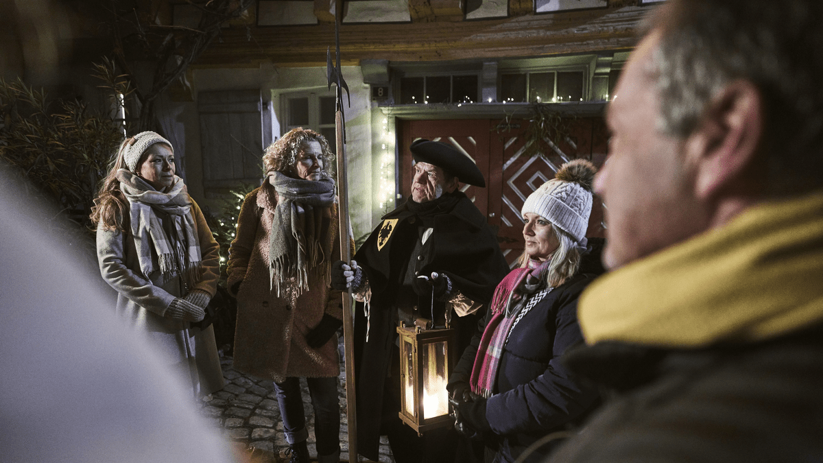 Mit Laterne, Horn und Hellebarde ausgestattet führt der Nachtwächter durch die Altstadt von Bad Wimpfen | Inkl. HNV-Ticket. Hört Ihr Leut' und lasst euch sagen | Nachtwächterführung Der Wimpfener Nachtwächter hat seinen Gästen einige unterhaltsame Geschichten zu erzählen. Mit Laterne, Horn und Hellebarde ausgestattet, besucht er ausgewählte Orte in der Altstadt und gibt Ihnen informative Fakten und witzige Anekdoten aus der Zeit ohne Strom und Fernseher mit auf den Weg. Inkludierte Leistungen geführter Rundgang mit dem Nachtwächter durch die historische Altstadt inkl. ÖPNV-Ticket für das regionale Streckennetz Weitere Hinweise Dauer ca. 1,5 h Beginn der Führung am Rathaus/Marktplatz Tickets online buchen max. Teilnehmerzahl 25 Personen Ermäßigung mit Gästekarte Bad Rappenau/Bad Wimpfen bwegt-Plus Partner: bei Vorlage eines tagesaktuellen bwtarif-Tickets erhalten Sie eine Vergünstigung Sonstiges Für Gruppen auch zum Wunschtermin ganzjährig individuell buchbar Nachtwächterführung auch in Englisch gegen Aufpreis buchbar Auch als Kinderführung "Laterne statt Lichtschalter" buchbar Tipp - kostenlose Anreise mit dem ÖPNV Bei Vorausbuchung der öffentlichen Stadtführung ist im Ticket die An- und Abreise mit dem ÖPNV im gesamten Streckennetz des HNV inklusive.