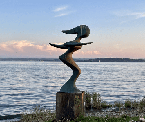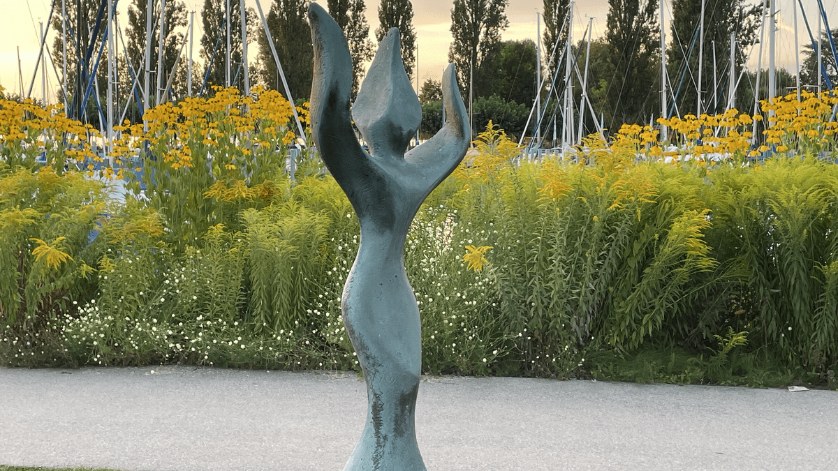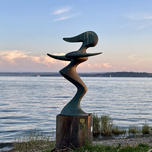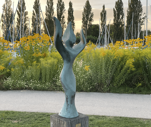Schon entdeckt? Auf der Ostmole am Hafen in Unteruhldingen präsentiert Künstler Oliver Ritter seine aktuellen Skulpturen und Werke. »Kraft im Raum« – diese Worte, unter die Oliver Ritter seine Skulpturen stellt, erschließen sich schon in der ersten Begegnung. Denn diese Bronzen stehen nicht passiv im neutralen Raum, sondern treten mit seinen Qualitäten in Resonanz, klären sie und wirken hin auf eine Stärkung des elementaren Feldes. Diese Aktivität entfaltet sich zwischen den Polen ihrer Standfestigkeit und der Offenporigkeit ihrer Oberflächen. – Wer ihren Raum betritt, kommt mit ihrer Kraft unmittelbar in Berührung. Am Anfang steht ihre Schönheit, die jedoch sehr bald das Scheinbare durchbricht und ein Wesenhaftes transportiert: ursprüngliche Bewegungen, die den Menschen als Bindeglied von Natur und Geist ansprechen und so in der Welt beheimaten. Diese Bewegungen reichen – im Blick auf die hier versammelten Werke – von der gehaltenen Aufrichtung der „Sternenfängerin“ bis zum unbeirrten Zeitenflug der „Zuversicht“. Man wird erleben, mit welcher subtilen Intensität diese Gestalten den Naturkräften des Bodensees zu antworten wissen. Quelle: Oliver Ritter