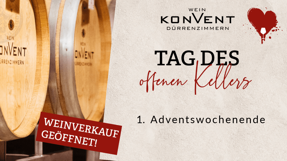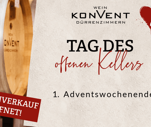 Schaut vorbei am diesjährigen Tag des offenen Kellers! Wir laden zur großen Verkostung unserer vielfältigen Weinwelt. Lassen Sie sich mit leckeren Speisen im weihnachtlich geschmückten Ambiente verwöhnen. Weitere Informationen Rundgang Weinkeller Weinverkauf geöffnet Weihnachtlicher Bauernmarkt Info: www.weinkonvent-duerrenzimmern.de Termin: 29. und 30.11. (11-18 Uhr)