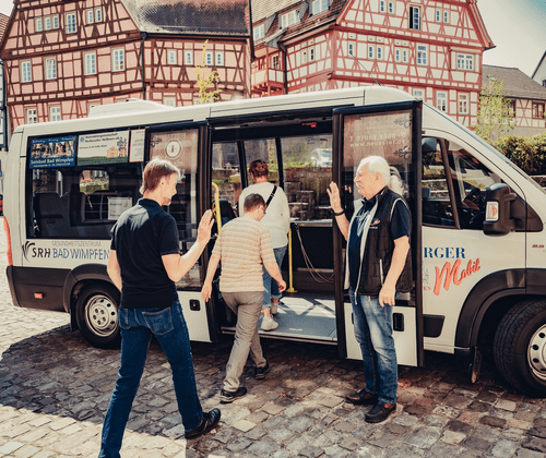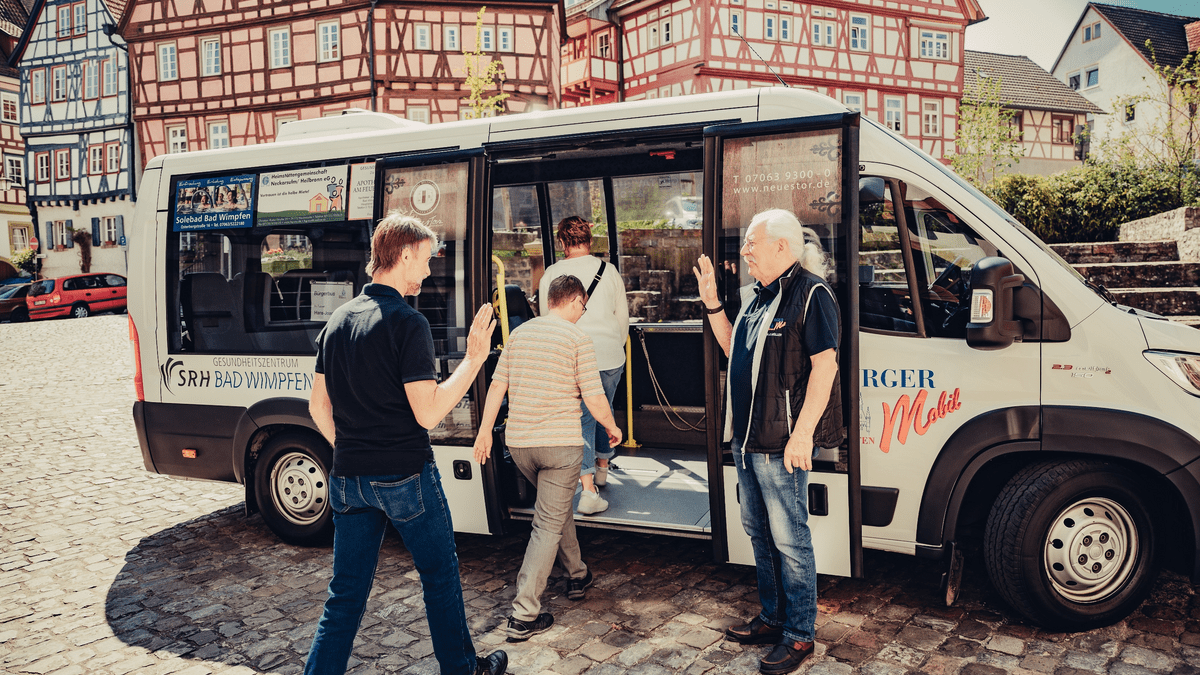 Bei der Stadtrundfahrt haben mobil eingeschränkte Gäste die Möglichkeit, Bad Wimpfen bequem mit einem Kleinbus zu entdecken. On Tour mit dem Bürgerbus | Stadtrundfahrt Entdecken Sie die versteckten Schätze von Bad Wimpfen ganz entspannt und bequem während einer Stadtrundfahrt mit dem Bürgerbus. Die Route führt durch die Fachwerk-Altstadt mit Zwischenstopps in der Kaiserpfalz und einem kurzen Ausflug in die Tal-Stadt mit einem Halt beim Kloster. Diese Rundfahrt ist besonders für diejenigen geeignet, die mobil eingeschränkt sind. Inkludierte Leistungen: Fahrt im Kleinbus mit Stopps an ausgewählten Plätzen Begleitung durch qualifizierten Gästeführer/Busfahrer inkl. ÖPNV-Ticket für das regionale Streckennetz Weitere Hinweise: Dauer ca. 1,5 h Beginn der Führung am SRH-Gesundheitszentrum oder an der Bürgerbushaltestelle Altes Spital/Langgasse Ticket online buchen max. Teilnehmerzahl 8 Personen Sonstiges: Für Kleingruppen auch zum Wunschtermin individuell ganzjährig buchbar Tipp - kostenlose Anreise mit dem ÖPNV Bei der Vorausbuchung der öffentlichen Stadtführung ist im Ticket die An- und Abreise mit dem ÖPNV im gesamten Streckennetz des HNV inklusive.