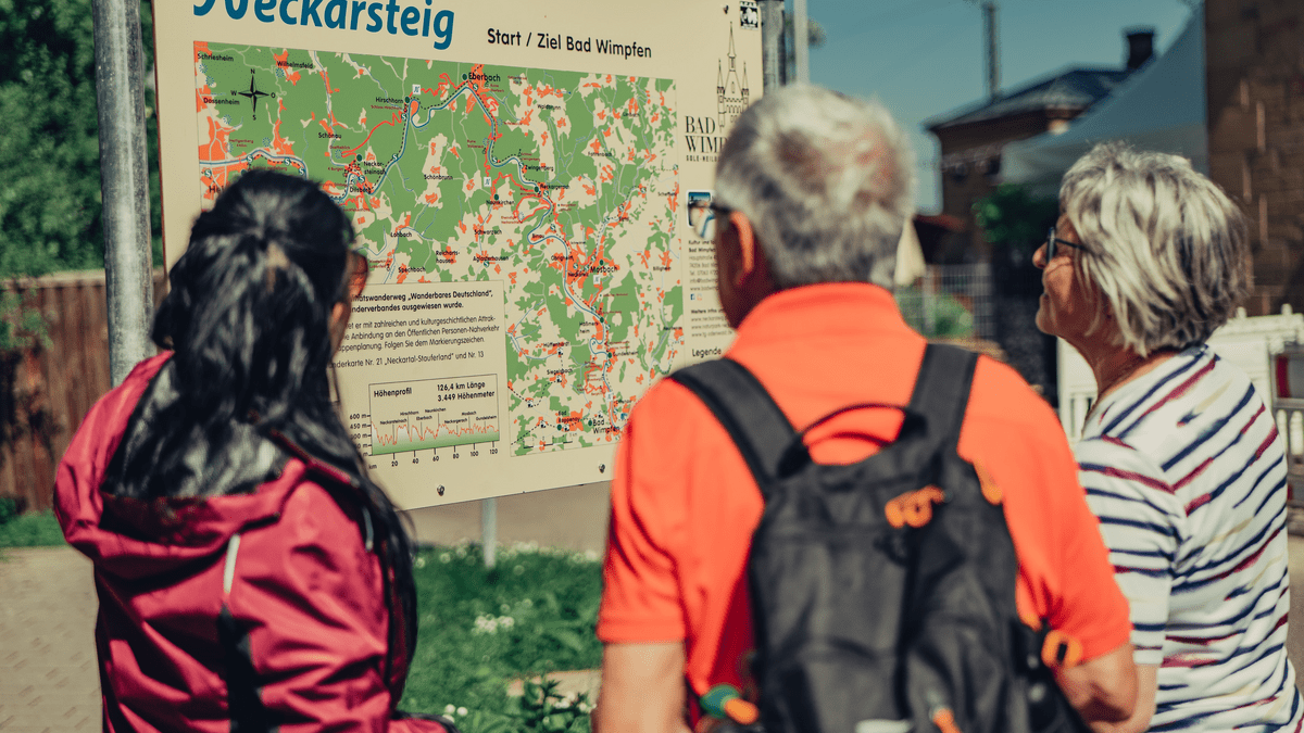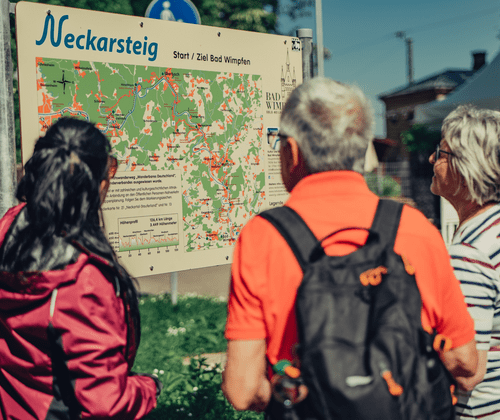 Erleben Sie den Neckarsteig von Bad Wimpfen bis Gundelsheim: vorbei an Schloss Heinsheim, der Bergkirche, Burg Guttenberg und mit optionaler Einkehr. Inkl. HNV Ticket. Wanderelebnis Neckarsteig | von Bad Wimpfen bis Gundelsheim Die erste (oder letzte) Teiletappe des Neckarsteiges führt von Bad Wimpfen über Schloss Heinsheim und die Bergkirche vorbei am jüdischen Friedhof bis zur Burg Guttenberg. Nach einer Besichtigung des Museums und dem Aufstieg auf den Turm führt der Weg weiter in den schönen Weinort Gundelsheim. Dort gibt es zum Abschluss die Möglichkeit der geselligen Einkehr (nicht inkludiert). Inkludierte Leistungen Wanderbegleitung und Informationen durch erfahrenen Wanderführer inkl. Museumseintritt inkl. ÖPNV-Ticket zur An- und Abreise Weitere Hinweise Dauer ca. 5 h Beginn der Führung am Bahnhof Bad Wimpfen Dauer ca. 5 h (mit Pausen und Besichtigung) Strecke: 13 km /230 Höhenmeter/ Anspruch leicht Tickets online buchen max. Teilnehmerzahl 25 Personen Ermäßigung mit Gästekarte Bad Rappenau/Bad Wimpfen bwegt-Plus Partner: bei Vorlage eines tagesaktuellen bwtarif-Tickets erhalten Sie eine Vergünstigung Ausrüstung Bequeme Wanderkleidung und festes Schuhwerk werden empfohlen Rucksack mit Vesper und Getränk Sonnen- und Regenschutz Sonstiges Für Gruppen auch zum Wunschtermin ganzjährig individuell buchbar Tipp - kostenlose Anreise mit dem ÖPNV Bei Vorausbuchung der öffentlichen Stadtführung ist im Ticket die An- und Abreise mit dem ÖPNV im gesamten Streckennetz inklusive.
