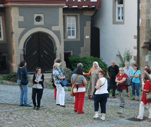 Unterhaltsame Führung in Bad Wimpfen: Antonia, die Frau des Spitalarztes, erzählt von mittelalterlichen Heilmethoden – spannend, lehrreich und amüsant! Vom Quacksalber, Bader und Medicus | Themenführung Auf einem Rundgang durch die Gassen der mittelalterlichen Stadt erzählt Antonia, die Frau des Spitalarztes, von der Sorge ihres Mannes und seinen Bemühungen um die Gesundheit der Mitmenschen im Mittelalter. Mancher Besucher wird froh sein, heute über die mittelalterlichen Behandlungsmethoden lachen zu können und nicht selbst Patient zu sein. Inkludierte Leistungen Themenführung im historischen Gewand durch die historische Altstadt inkl. ÖPNV-Ticket für das regionale Streckennetz Weitere Hinweise Dauer ca. 1,5 h Beginn der Führung ab Tourist-Information/ Spitalhof max. Teilnehmerzahl 25 Personen Tickets online buchen Ermäßigung mit Gästekarte Bad Rappenau/Bad Wimpfen bewegt-Plus Partner: bei Vorlage eines tagesaktuellen bwtarif-Tickets erhalten Sie eine Vergünstigung Sonstiges: Für Gruppen auch zum Wunschtermin ganzjährig individuell buchbar Auch für Kindergruppen unter dem Namen "Wegereich als Wundverband" buchbar Tipp - kostenlose Anreise mit dem ÖPNV Bei Vorausbuchung der öffentlichen Stadtführung ist im Ticket die An- und Abreise mit dem ÖPNV im gesamten Streckennetz des HNV inklusive.