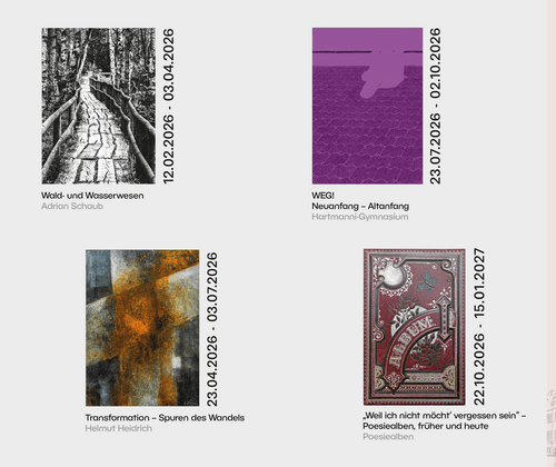 Die Ausstellung "WEG! Neuanfang 1 Altanfang, Hartmanni-Gymnasium" ist vom 23. Juli 2026 bis 2. Oktober 2027 in der Galerie im Eppinger Rathaus zu sehen. Die Schuler*innen der Jahrgangsstufen presentieren eigene Arbeiten, die sich mit altbekannten und neuen Wegen beschaftigen. Die Ausstellung vereint Malerei, Installationen und performative Elemente. Das Hartmanni-Gymnasium wird wahrend der Ausstellung wegmalerisch mit dem Rathaus verknupft. Die Ausstellung lauft bis einschl. 2. Oktober und ist zu den ffnungszeiten des Rathauses, montags bis freitags von 8.00 -12.00 Uhr und donnerstags von 13.30 bis 17.30 Uhr zu sehen. Eintritt frei! Zur Erffnung der Ausstellung "WEG! Neuanfang 1 Altanfang - Hartmanni-Gymnasium" am Donnerstag, 23. Juli 2026, um 18 Uhr laden wir Sie herzlich ein.