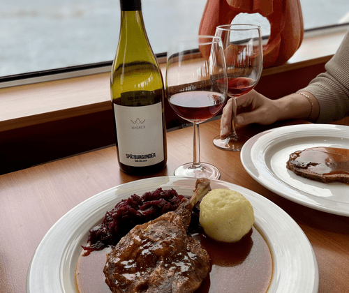 2-stündige Rundfahrt inklusive Essen. 2-stündige Rundfahrt inklusive frischer knuspriger Gänsekeule, Krustenbraten, Apfelrotkohl, Kartoffelknödel, Spätzle vom Buffet. Wahlweise mit gemischtem Salat € 6,50 Anmeldung erforderlich