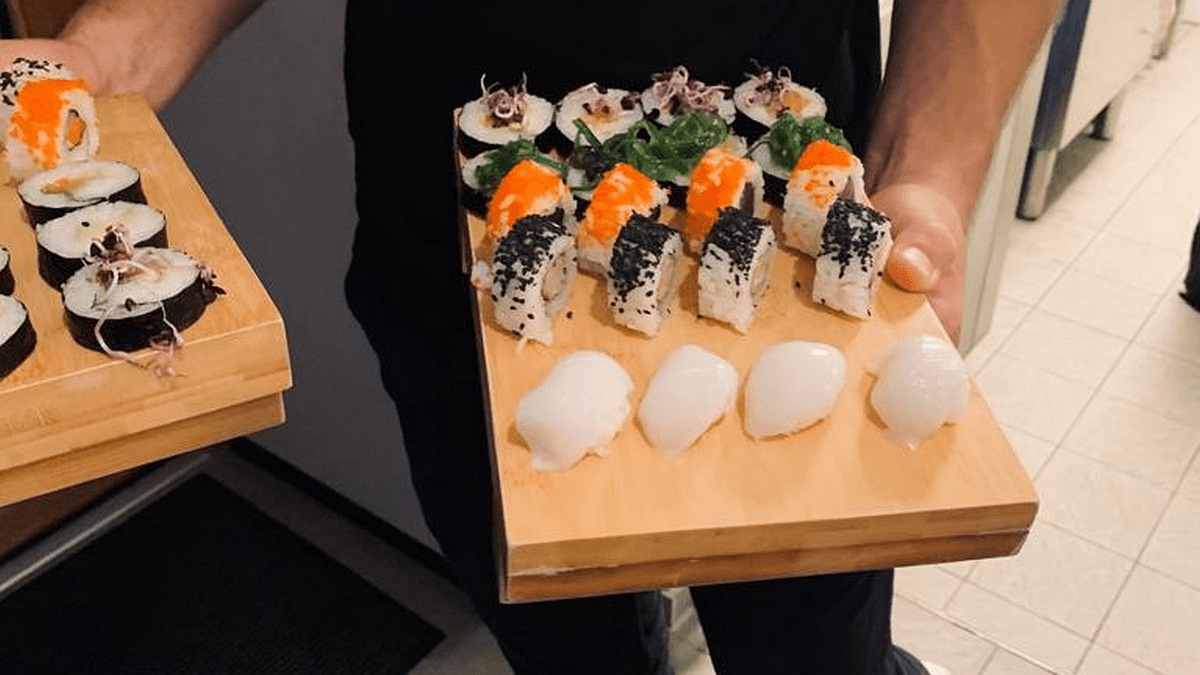 Das passt hervorragend: Feines vom Sushi-Lädle in Fellbach und ausdrucksstarke Weine vom Weingut Klopfer und internationale Gewächse – stolz präsentiert von Christoph Klopfer und dem Sommelier Daniel Hasert.
