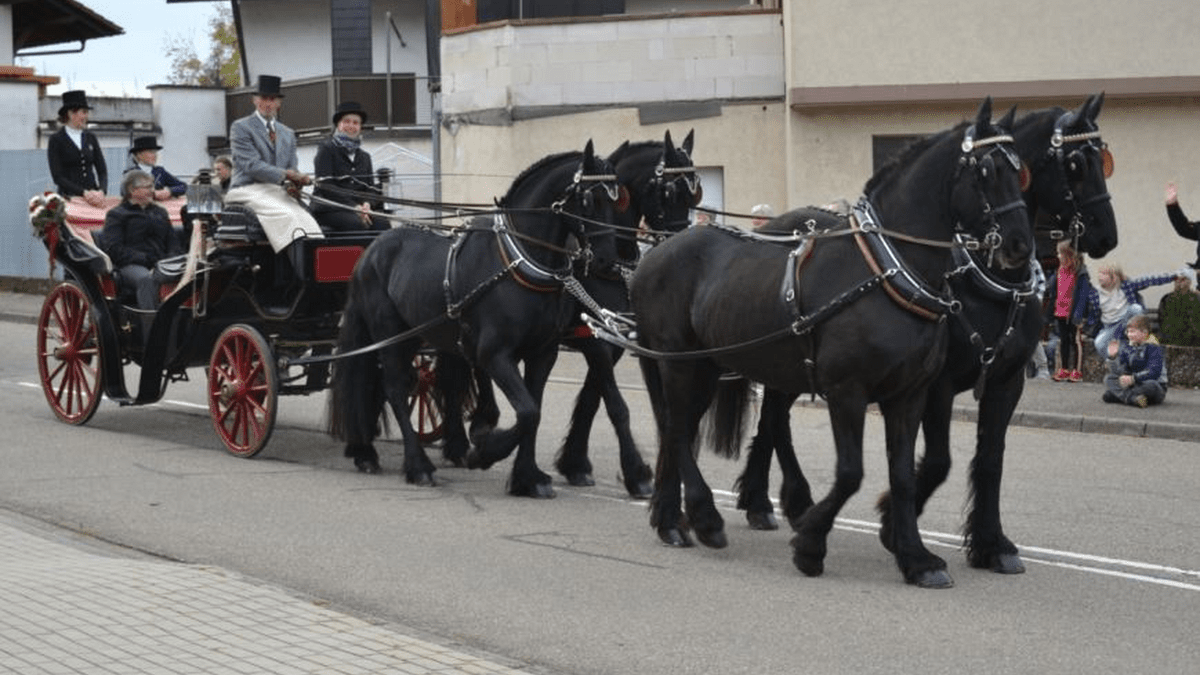 **Das “Laufer Feschd” ist jedes Jahr ein Höhepunkt in der Laufer Gemeinde.** Seit 1648 ist der Name St. Leonhard mit der Gemeinde Lauf verbunden. Damals wurde die erste Dorfkirche in Lauf dem heiligen Leonhard geweiht. Der Abt Leonhard von Noblac wurde als großer Wohltäter und Helfer in Nöten und als Schutzpatron der Pferde und des Viehs verehrt. Einmal im Jahr ertönt durch unser Dorf Pferdewiehern und Hufgetrappel, begleitet von musikalischen Klängen des Musikvereins und der Spielmannszüge und das Rollen der Kutschenräder – unser Leonhardusritt zieht durch Lauf. Seit 1648 ist der Name St. Leonhard mit der Gemeinde Lauf verbunden. Damals wurde die erste Dorfkirche in Lauf dem heiligen Leonhard geweiht. Der Abt Leonhard von Noblac wurde als großer Wohltäter, Helfer und als Schutzpatron der Pferde und des Viehs verehrt. Ihm zu Ehren fand im Jahr 1966 zum 1. Mal der Leonhardusritt in Lauf statt. Viele Pferdebesitzer, Reitvereine und Pferdefreunde aus dem gesamten mittelbadischen Raum besuchen an diesem Tag alljährlich die Gemeinde Lauf. Der Programmablauf an unserem Festtag gestaltet sich wie folgt: 09:00 Uhr: Festgottesdienst in der Pfarrkirche St. Leonhard. Im Anschluss daran findet vor der Kirche ein Platzkonzert der Laufbachmusikanten statt und die Kirche lädt zum Sektempfang. Empfang der Ehrengäste am Mittag, die in den geschmückten Ehrenkutschen Platz nehmen. Zahlreiche Zuschauer säumen den Straßenrand, um die Pferdeprozession und den Umzug durch das Dorf mitzuerleben. Den Abschluss bildet die Pferdesegnung vor dem Rathaus. Am Leonhardusritt wird es eine Spielstraße für Groß und Klein geben – von einer XXL Murmelbahn, über eine Seifenblasenstation bis hin zu verschiedensten Geschicklichkeitsspielen wird unter der Anleitung von pädagogischen Fachkräften der Vorplatz der Neuwindeckhalle zu einer echten Erlebniswelt. Im ganzen Dorf werden die Besucher kulinarisch versorgt, das Angebot reicht von Gulasch- und Kürbissuppe, Gegrilltem über Pommes bis hin zu Waffeln und Kuchen.