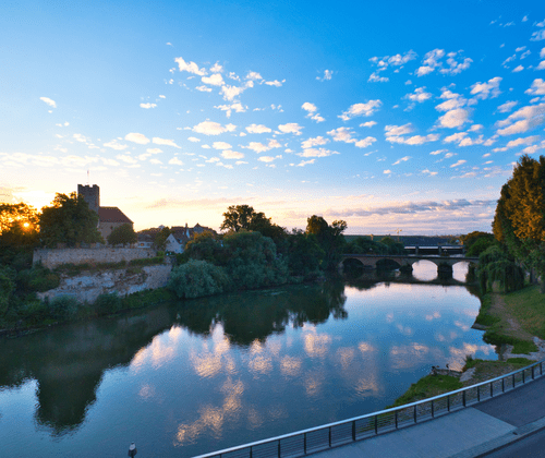 Neckaransichten mit Einblick in den römischen Gutshof und Blick vom Krappenfelsen 0 Uhr