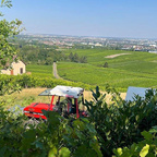 Steigen Sie ein und fahren Sie im Planwagen mit einem Wengerter in die Heilbronner Weinberge. Mit Weinprobe unterwegs und anschließendem Abendessen Die Fahrt vom idyllischen Weingut Bauer in Sontheim in die umliegenden Weinberge ist nicht nur eine Reise durch die Natur, sondern auch durch die interessante Welt des Weinbaus. In den Weinbergen angekommen dürfen Sie dann auch probieren. Eine 3er-Weinprobe begleitet von köstlichem Käse und frischem Brot gibt Ihnen einen Vorgeschmack auf das, was Sie später beim Abendessen im Weingut erwartet. Für Gruppen bis 60 Personen, von April bis Oktober buchbar. Leistungen 1 Glas Sekt zum Aperitif3er-Weinprobe inkl. Wasser, Säfte, Käsewürfel und BrotPlanwagenfahrt und kleine Wanderung durch die Weinberge mit einem Wengerter oder Weinerlebnisführer/WeinerlebnisführerinAbendessen à la carteDauer: ca. 2 Std. plus AbendessenHinweis: Die Fahrt findet bei einer Mindestteilnehmerzahl von 20 Personen exklusiv statt. Kleinere Gruppen werden mit anderen Gästen zusammengelegt.Tipp: Die Tour ist auch als Brunch-Tour buchbar, 69 Euro pro Person (mindestens 15 Personen).