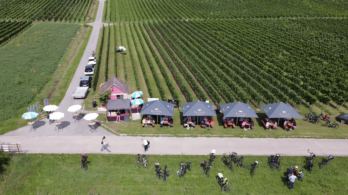 Idyllisch am Waldrand und zwischen Weinbergen lädt der Weinausschank zwischen Brackenheim und Nordheim ein, die Weine der Privatkellerei Rolf Willy zu genießen. ### Bühl-Hütte – Genuss am Jupiterberg Wie der Name schon andeutet, liegt der Weinausschank am Fuße des malerischen Jupiterberges, denn „Bühl“ bedeutet „Hügel“. Umgeben von Weinreben und Wald genießen Sie hier neben Wein auch spritzigen Sekt und alkoholfreie Getränke. Dazu gibt es kleine Speisen. ### Öffnungszeiten Vom 26.04.-25.10.2026 hat die Bühl-Hütte bei gutem Wetter an Sonn- und Feiertagen von 11-18 Uhr geöffnet. Verlässliche Öffnungszeiten erfragen Sie unter [07133 95010](tel:0713395010) oder [info@rolf-willy.de](mailto:info@rolf-willy.de) oder unter der Bühl-Hütte Facebook Seite. #### Raststation für Rad & Wandern Die Bühl-Hütte lädt bei einer Rad- oder Wandertour an Sonn- und Feiertagen zu einer genussvollen Pause ein.