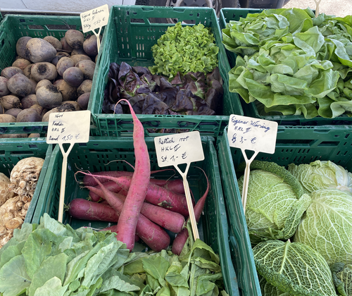Ein vielfältiges Angebot an regionalen und mediterranen Produkten erwartet Sie - stets frisch Biohof Neidhardt - Gemüse, Saft, Brände Gemüsebau Bruttel - Gemüse Obstbau Blanhof - Obst und Gemüse, Säfte, Liköre, Seccos und Brände, Fruchtaufstriche, Nudeln Metzgerei Engler - Fleisch- und Wurstprodukte Käse Schober - Exquisite Käsesorten, Pestos Gutes aus Südtirol - Käse, Salami, Kaminwurzen, Schüttelbrot De Sanctis - Feines aus Italien Safari - Feinkost und Oliven Die Markthändler freuen sich auf Ihren Besuch. Während der Sommerzeit von 8:00 bis 12:00 Uhr, in der Winterzeit von 9:00 bis 12:00 Uhr