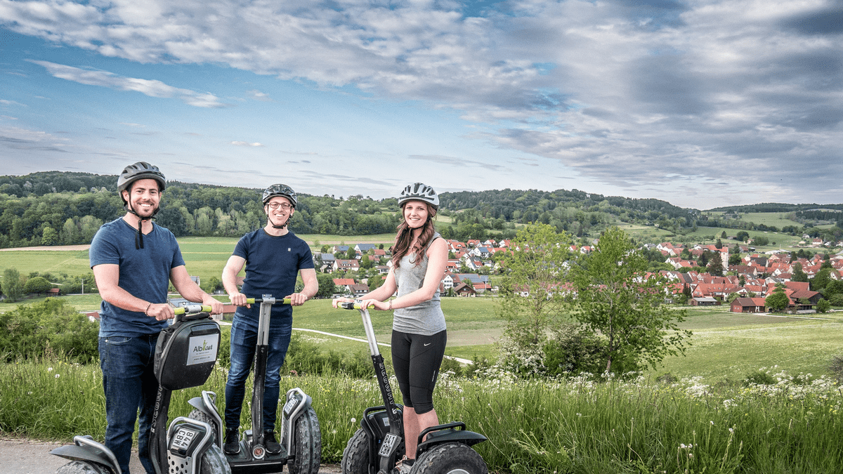 Mit dem Segway geht es rund um Münsingen. Das Team von AlbTour bringt Sie zu den schönsten Ecken der Schwäbischen Alb. Erleben Sie Münsingen und den ehemaligen Truppenübungsplatz mit dem SEGWAY. Schnell und entspannt kommen wir damit voran und genießen den Fahrspaß. Dabei entdecken wir die abwechslungsreiche Landschaft und viele Besonderheiten des Biosphärengebiets Schwäbische Alb. Tourguide: AlbTour-Team Mindestalter 14 Jahre, Körpergewicht 45-115 kg, keine körperl. Einschränkungen Preise auf Anfrage. Veranstalter: AlbTour, Münsingen Auch individuelle Termine sind möglich. Rufen Sie uns an unter Tel. 07381 5017160