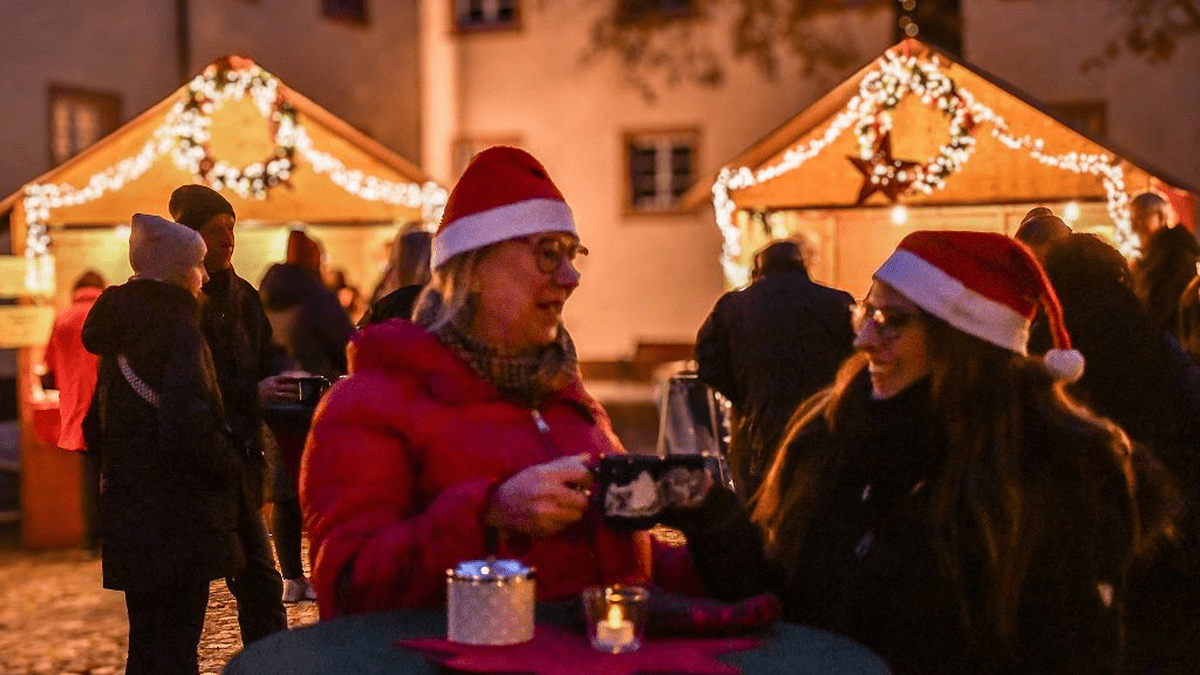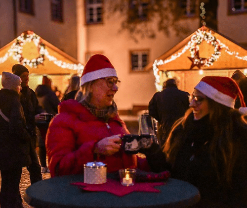 Eine kleine, feine Adventsfeier unter freiem Himmel. Im liebevoll geschmückten Wolfacher Schlosshof laden Glühwein, Punsch, Rostbratwurst und Waffeln zum gemütlichen Beisammensein ein.