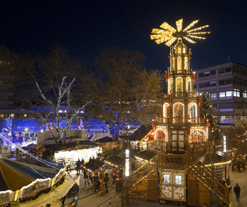Der Goldene Pforzheimer Weihnachtsmarkt ist ein gemütlicher Weihnachtsmarkt mit goldenem Riesenrad, kulinarischen Genüssen und geselliger Stimmung auf dem Marktplatz Pforzheims im nördlichen Schwarzwald. Was duftet nach Mandeln, Glühwein und guter Laune? Dann ist es der Goldene Pforzheimer Weihnachtsmarkt ! Die schönste Zeit des Jahres kann mit einem heißen Glühwein oder Kinderpunsch in der Hand auf dem prächtigen Weihnachtsmarkt im nördlichen Schwarzwaldes genossen werden. Der Goldene Pforzheimer Weihnachtsmarkt bietet alles was zu einem waschechten Weihnachtsmarkt dazu gehört: ein goldenes Riesenrad , Weihnachtsbaum, köstliche Weihnachtsleckerein , eine Bühne mit tollem Programm und dieses Jahr auch erstmalig mit einem Olivenholzstand. Der besondere Charme und der unvergleichbare Lichterglanz versetzen Besuchende mit Garantie in richtig weihnachtliche Stimmung. Besonders in Baden-Württemberg ist der einzigartige Drei-Klang, den Pforzheim zur Weihnachtszeit bietet: ein schöner Weihnachtsmarkt , ein spannender Mittelaltermarkt sowie eine Kunststoffeisbahn zum Schlittschuhfahren.