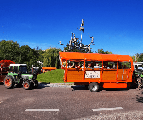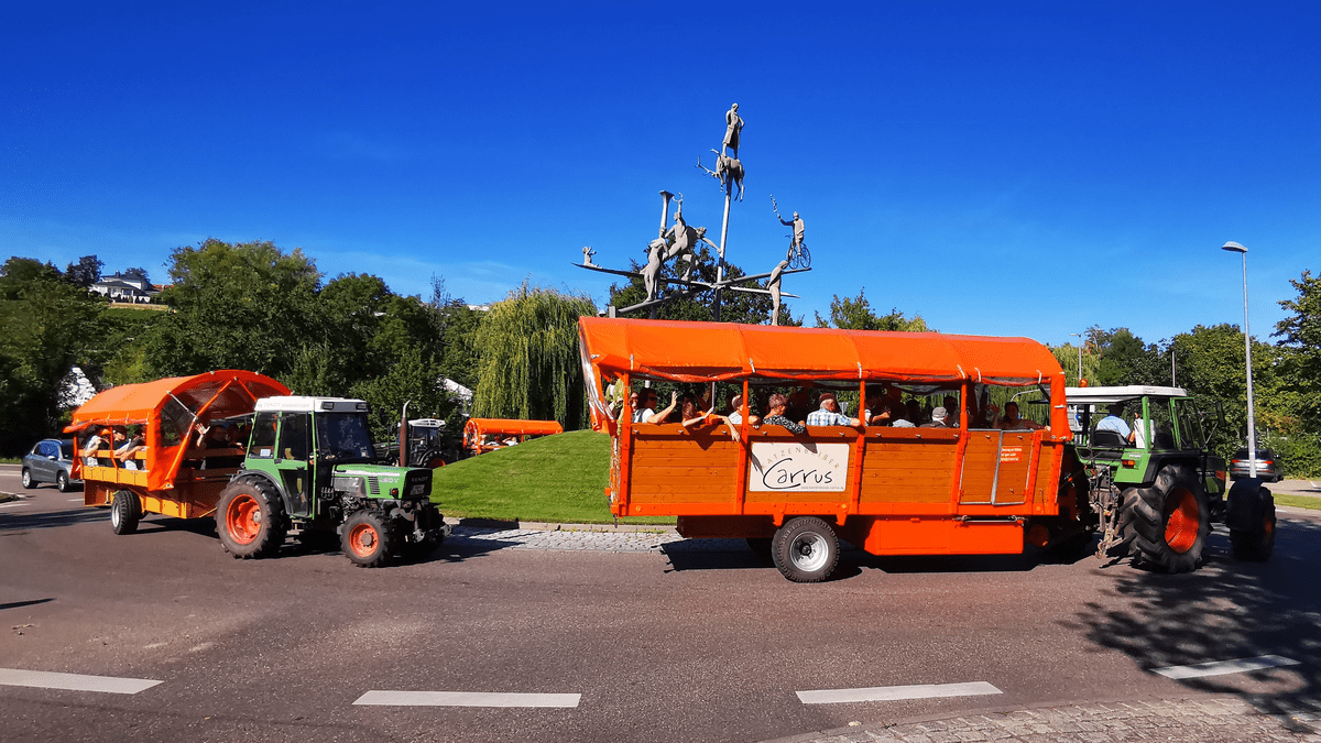 Planwagenfahrt im "Katzenbeißer Carrus" mit Weinprobe Erfahren Sie mehr über die Lauffener Stadtgeschichte, erleben Sie Weinproben an den Orten, wo die Weine entstehen und genießen Sie eine Fahrt mit dem exklusiven Planwagen "Katzenbeißer Carrus" der Familie Buck. Halt wird dazu an bedeutsamen Plätzen gemacht. Sie fahren durch herrlich gelegene Weinberge und erleben einzigartige Ausblicke auf Lauffen und den Neckar. An unterschiedlichen Stationen genießen Sie Weinproben und bekommen interessante Erläuterungen zum Thema Weinbau. Wasser, Traubensaft und ein regionaltypisches Vesper werden dazu gereicht. Es stehen vier Gefährte unterschiedlicher Größe zur Verfügung: Katzenbeißer Carrus - bis zu 25 Personen, beheizbar Katzenbeißer Carrusine - bis zu 20 Personen Katzenbeißer Cärrele - bis zu 15 Personen Katzenbeißer Carruso - bis zu 25 Personen + ein Rollstuhlplatz Inkludierte Leistungen Weinbergrundfahrt im Planwagen Begleitung durch zertifizierte Weinerlebnisführerin und staatlich geprüften Weinbautechniker Weinproben (Weingärtner Lauffen eG) inkl. Wasser, Traubensaft und Vesper Erläuterungen zum Thema Weinbau und Stadtgeschichte Wissenswertes Dauer: ca. 3,5 Stunden oder individuell nach Absprache Maximale Teilnehmeranzahl: max. 85 Personen insgesamt 4 Wagen unterschiedlicher Größe Touren können sowohl in englischer als auch französischer Sprache gebucht werden Preise auf Anfrage nach individueller Vereinbarung Infos unter: 0176 96607156 oder katzenbeisser-carrus@gmx.de Tourismushelden 2024 Der Katzenbeißer Carrus ist ausgezeichnet! Jedes Jahr werden im Rahmen der CMT Messe Stuttgart Akteure in Baden-Württemberg für ihr besonderes Engagement im Tourismus geehrt. Auch die Familie Buck durfte sich über die Ehrung freuen und macht mit großer Freude "ausgezeichnet" weiter.