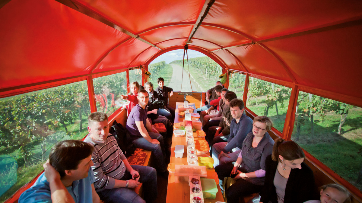Planwagenfahrt im "Katzenbeißer Carrus" mit Weinprobe Erfahren Sie mehr über die Lauffener Stadtgeschichte, erleben Sie Weinproben an den Orten, wo die Weine entstehen und genießen Sie eine Fahrt mit dem exklusiven Planwagen "Katzenbeißer Carrus" der Familie Buck. Halt wird dazu an bedeutsamen Plätzen gemacht. Sie fahren durch herrlich gelegene Weinberge und erleben einzigartige Ausblicke auf Lauffen und den Neckar. An unterschiedlichen Stationen genießen Sie Weinproben und bekommen interessante Erläuterungen zum Thema Weinbau. Wasser, Traubensaft und ein regionaltypisches Vesper werden dazu gereicht. Es stehen vier Gefährte unterschiedlicher Größe zur Verfügung: - Katzenbeißer Carrus - bis zu 25 Personen, beheizbar - Katzenbeißer Carrusine - bis zu 20 Personen - Katzenbeißer Cärrele - bis zu 15 Personen - Katzenbeißer Carruso - bis zu 25 Personen + ein Rollstuhlplatz ### Inkludierte Leistungen - Weinbergrundfahrt im Planwagen - Begleitung durch zertifizierte Weinerlebnisführerin und staatlich geprüften Weinbautechniker - Weinproben (Weingärtner Lauffen eG) inkl. Wasser, Traubensaft und Vesper - Erläuterungen zum Thema Weinbau und Stadtgeschichte ### Wissenswertes - Dauer: ca. 3,5 Stunden oder individuell nach Absprache - Maximale Teilnehmeranzahl: max. 85 Personen - insgesamt 4 Wagen unterschiedlicher Größe - Touren können sowohl in englischer als auch französischer Sprache gebucht werden - Preise auf Anfrage nach individueller Vereinbarung - Infos unter: 0176 96607156 oder katzenbeisser-carrus@gmx.de #### Tourismushelden 2024 Der Katzenbeißer Carrus ist ausgezeichnet! Jedes Jahr werden im Rahmen der CMT Messe Stuttgart Akteure in Baden-Württemberg für ihr besonderes Engagement im Tourismus geehrt. Auch die Familie Buck durfte sich über die Ehrung freuen und macht mit großer Freude "ausgezeichnet" weiter.