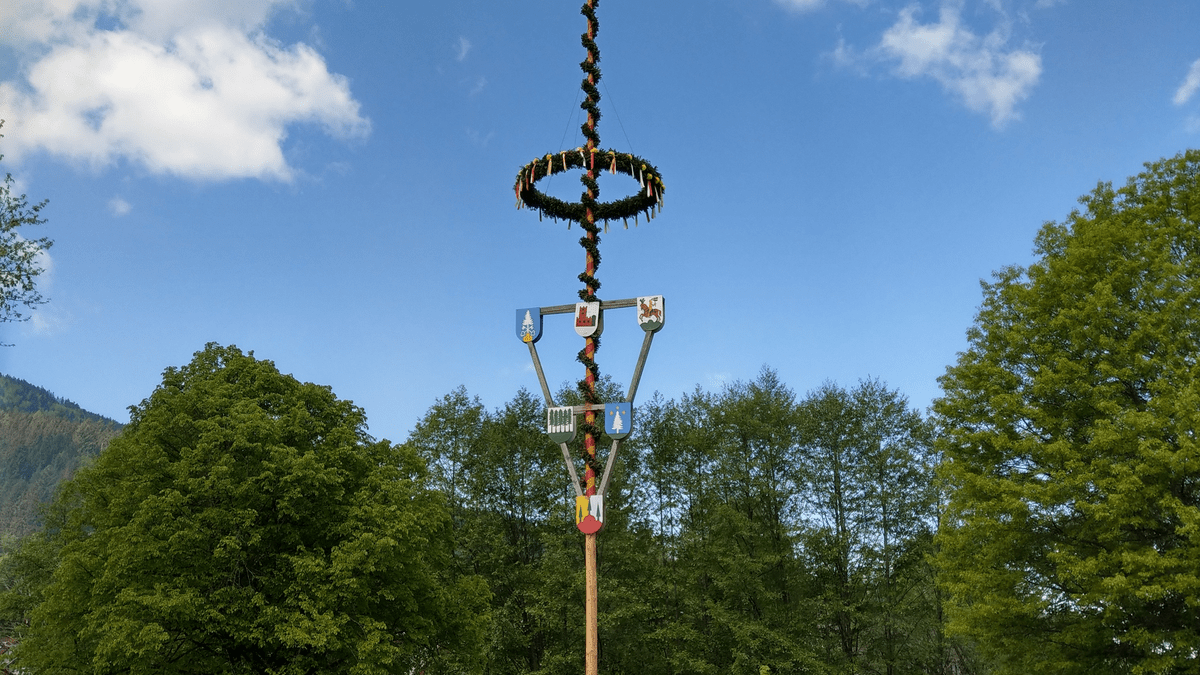 Nach alter Sitte wird deer Maibam vom Brauchtumsverein Simonswäldertal e.V. ausgeschmückt und angeliefert. Mit viel Muskelkarft wird er aufgestellt durch die Zimmerleute der Firmen Helmle, Baumer und Stratz. Dazu spielt die Trachtenkapelle Simonswald, und das JBO Simonswald sorgt für beste Verpflegung. Über Ihren Besuch freuen sich die Veranstalter