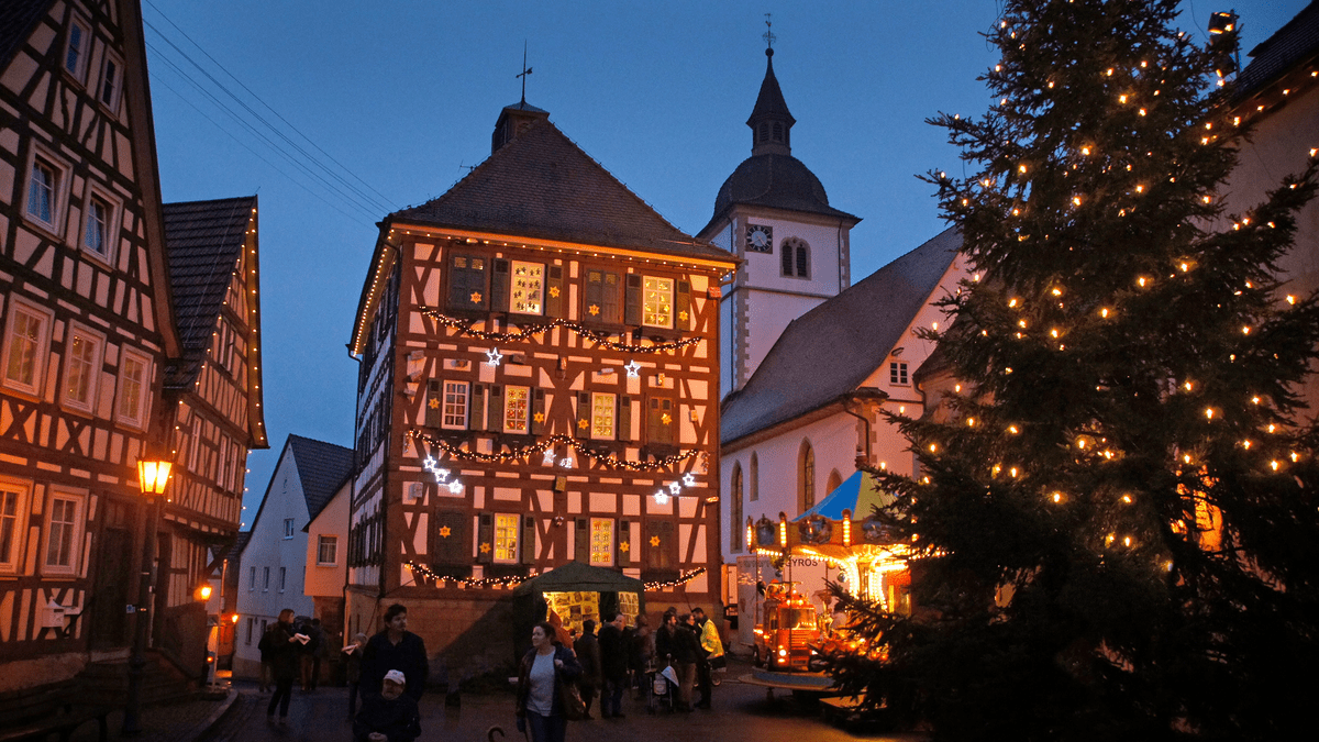 Im historischen Ortskern von Knittlingen findet der Weihnachtsmarkt mit einem vielfältigen Rahmen-Programm für alle Altersklassen statt. **Sternstunden in der Fauststadt** Der Weihnachtsmarkt der Fauststadt Knittlingen findet im historischen Zentrum statt. Im Pfleghof finden die Besucher die weihnachtlich geschmückten Holzhütten der Knittlinger Vereine sowie eine kleine Veranstaltungsbühne für das Rahmenprogramm. Kulinarische Speisen und leckere Heißgetränke werden angeboten. Vor dem Faustmuseum und der ev. Kirche befinden sich die Stände der Kunsthandwerker und im Bereich der hinteren Marktstraße bieten Foodtrucks ihre vielfältigen Gerichte an. Das Jugendhaus beteiligt sich mit einer Bastelaktion sowie Vorlesestunden für Kinder, Jugendliche und Erwachsene. An einer kostenfreien Führung durch das Faustmuseum kann man am Sonntag teilnehmen. Im Steinhaus wartet eine Fotobox mit einer weihnachtlichen Kulisse auf Familien, die eine bleibende Erinnerung mit nach Hause nehmen können.