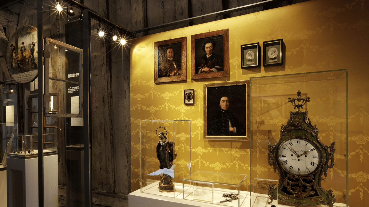 Die Führung ist eine kurzweilige Entdeckungsreise auf den Spuren von fast 1000 Jahren Quartier- und Stadtgeschichte. Nach einem kurzen Kennenlernen des Quartiers im Innenhof, lernen Sie drei ehemalige Bewohner und ihre Lebenswelten kennen. Auf den Spuren von Hans Humpis erkunden Sie seine noble Wohnetage im ersten Obergeschoss und werden fasziniert von dem europaweiten Handel der Ravensburger Handelsgesellschaft im 15. Jahrhundert. Das Dachgeschoss bildet das nächste Ziel, dort hängte der Weißgerber Johannes Wucherer, ein typischer Zunfthandwerker des gemischtkonfessionellen Ravensburg, seine Felle zum Trocknen auf. Zum Abschluss führt der Weg über den Innenhof auf die Laubengänge, wo man in den ehemaligen Gasträumen des Wirts Gottfried Rösch mit dem Zeitalter der Industrialisierung Bekanntschaft macht.