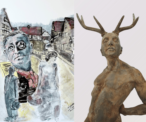 Im Rahmen des Ausstellungsprojektes Shades of Calw stellen die Künstlerinnen Christel Kriwan und Ann Stratsaert ab dem 12. Oktober 2025 gemeinsam ihre Kunstwerke in der Kultur-Apotheke in Calw aus. Christel Kriwan und Ann Stratsaert präsentieren ihre Kunstwerke in der Kultur-Apotheke Malerei und Bildhauerei ergänzen sich bei den beiden Künstlerinnen auf harmonische Weise und schlagen eine Brücke zwischen der Vergangenheit und Gegenwart sowie den Menschen der Stadt. Den Grundstein für Christel Kriwans künstlerisches Schaffen legte ihre Ausbildung zur Grafikerin und die anschließende Berufstätigkeit als Layouterin in Stuttgarter Verlagen. Die gebürtige Calwerin stellt den Menschen in den Mittelpunkt ihres künstlerisches Schaffens - ob als Akt, Sportmotiv in Acryl oder in großformatigen Porträts in Aquarell, die auf ihren Reisen nach Afrika entstanden sind. Auch in Öl, Ton und Beton sind bereits Kunstwerke entstanden, aber Kriwans besondere Leidenschaft gilt der Aquarellmalerei, die für sie, wie sie selbst sagt, "die hohe Schule des Malens" ist: "Das Aquarell verzeiht durch seine Technik fast nichts und ist, im Gegensatz zu anderen Maltechniken, kaum zu korrigieren. Diese Herausforderung hat mich immer gereizt." So entstanden in den vergangenen Jahren auch zahlreiche Calw-Aquarelle als Auseinandersetzung mit ihrer alten Heimat, die in der kommenden Ausstellung ebenfalls zu sehen sind. Durch die spontane, oft dynamische und expressive Pinselführung, in der sie mit schnellem Strich malt und oft mit Tusche unterstreicht, hat sich ein eigener, ganz persönlicher Stil entwickelt. Die belgische Künstlerin Ann Stratsaert lebt seit 2021 in Calw. 2020 absolvierte sie eine Ausbildung zur Bildhauerin an der Akademie der Bildenden Künste in Aarschot (Belgien). Bereits viele Jahre zuvor hatte sie die Region durch regelmäßige Urlaubsaufenthalte in Hirsau kennengelernt und war von der landschaftlichen Schönheit und den historischen Gebäuden beeindruckt. Nach ihrem Umzug nach Calw bot sich schon bald die Gelegenheit, ihre Arbeiten in der damals neueröffneten Kultur-Apotheke zu präsentieren und so fand sie schnell Anschluss an die lokale Kunstszene. Für die aktuelle Ausstellung hat Ann Stratsaert unterschiedliche Themen aufgegriffen: Ein Teil der Arbeiten gehört zur Reihe „Die Besucher der Stadt“, in der sie sich von den Sehenswürdigkeiten, insbesondere den Fachwerkhäusern Calws inspirieren ließ. Weitere Figuren thematisieren die Natur der Umgebung, die Wälder und Wanderwege, prägende persönliche Begegnungen sowie Aspekte der Stadtgeschichte. Allen Arbeiten gemeinsam ist der Fokus auf den Menschen: Körpersprache und Mimik prägen die Figuren und lassen sowohl individuelle Ausdruckskraft als auch den Charakter der Stadt sichtbar werden. Die Ausstellung ist zu den üblichen Öffnungszeiten der Kultur-Apotheke bis zum 16. November 2025 zu besichtigen. Das Ausstellungsprojekt Shades of Calw erstreckt sich über das ganze Jahr 2025 und bietet ausgewählten Calwer Künstlerinnen und Künstlern die Möglichkeit, sich in Form einer Einzelausstellung zu präsentieren.