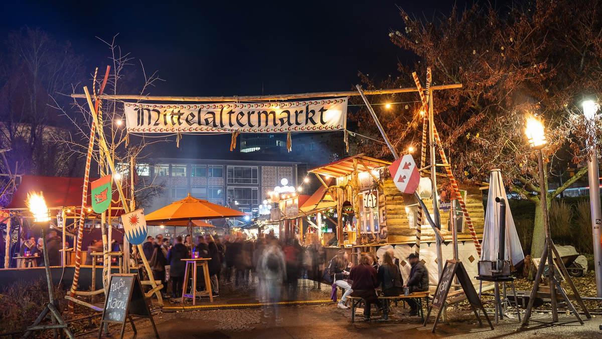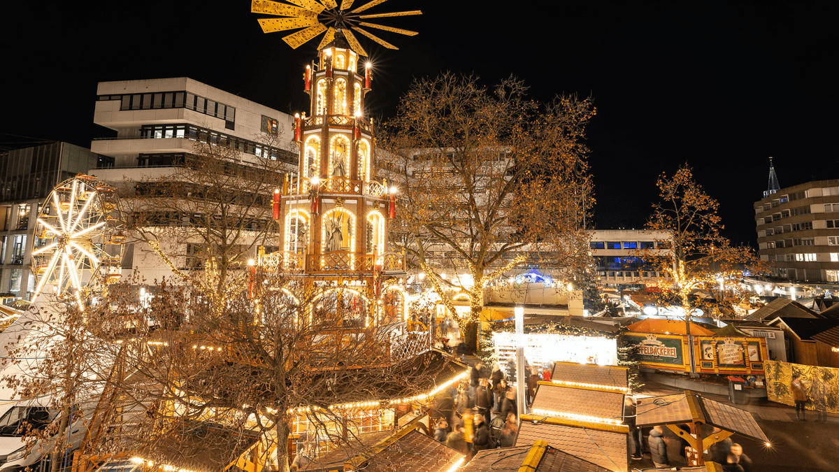 Pforzheim ist als „Goldstadt“ bekannt, denn die Stadt am Nordrand des Schwarzwalds blickt auf eine reiche Goldschmiede- und Uhrmachergeschichte zurück. Zur Weihnachtszeit erstrahlt die winterliche Stadt im wahrsten Sinne des Wortes in goldenem Licht. Der Pforzheimer Dreiklang aus gemütlichem Weihnachtsmarkt, spannendem Mittelaltermarkt und erlebnisreicher Eisbahn ist einzigartig in [Baden-Württemberg](https://www.deutsche-weihnachtsmaerkte.de/weihnachtsmarkt/in/baden-wuerttemberg/) und zieht Gäste aus nah und fern in seinen festlichen Bann. Der Duft von gebrannten Mandeln, weihnachtlichen Gewürzen und süßem Lebkuchen liegt in der Luft. Alle Jahre wieder fiebern die Kinder der Eröffnung des [Goldenen Pforzheimer Weihnachtsmarktes](https://www.deutsche-weihnachtsmaerkte.de/weihnachtsmarkt/in/baden-wuerttemberg/goldener-weihnachtsmarkt-pforzheim-1141.html) entgegen, denn traditionell bekommen sie zu Beginn der festlichen Adventswochen süßes Dambedeis", wie die Lebkuchenmännchen hier genannt werden. Dann verwandeln sich Marktplatz und Fußgängerzone vom 27. November bis 22. Dezember 2023 in ein stimmungsvolles Weihnachtsdorf. Rund um die „Goldene Engelspyramide“ gruppieren sich ein goldenes Riesenrad und Kinderkarussells, zahlreiche Lauben und **eine der größten begehbaren Weihnachtsmarkthütten Deutschlands**, in der eine große Auswahl an Weihnachtsschmuck präsentiert wird. Ein besonderes Highlight ist die [Pforzheimer Winterwelt auf dem Waisenhausplatz](https://www.deutsche-weihnachtsmaerkte.de/weihnachtsmarkt/in/baden-wuerttemberg/pforzheimer-winterwelt-3303.html) direkt an der Enz: Auf einer umweltfreundlichen Kunststoffbahn können sich Groß und Klein im Schlittschuhlaufen und Stockschießen messen. Auch hier gibt es zur Stärkung und zum Aufwärmen kulinarische Köstlichkeiten, heißen Glühwein oder Kakao. Zu einer Zeitreise lädt dagegen der [fantasievolle Mittelaltermarkt im Blumenhof](https://www.deutsche-weihnachtsmaerkte.de/weihnachtsmarkt/in/baden-wuerttemberg/mittelalter-weihnachtsmarkt-pforzheim-2391.html) ein: An historischen Ständen können alte Handwerkstechniken ausprobiert werden. Feuerspucker, Gaukler und Musikanten entführen mit ihren Darbietungen in eine faszinierende Welt. Und zu Bio-Brot oder Waffeln aus dem Holzofen, heißen Maroni oder Rosmarinkartoffeln gibt es zum Beispiel alten Mokka, Gewürzwein nach einem Rezept der Hildegard von Bingen oder Craft Beer aus alten Getreidesorten.