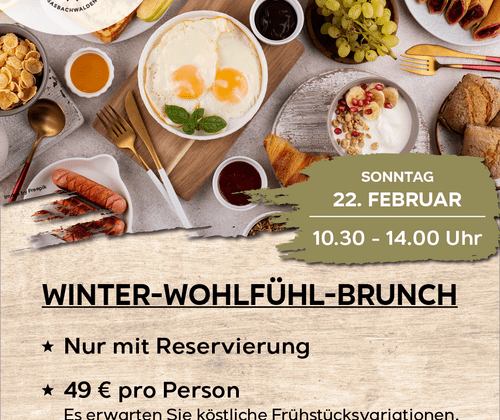 Starten Sie gemütlich in einen Wintertag mit einem bunten Buffet aus Frühstücksklassikern und saisonalen Leckereien. Kaffee, Tee und Säfte sind im Preis enthalten. ______________________________ Reservierungen nehmen wir gerne telefonisch oder per E-Mail entgegen. +49 7841 3609 info@spinnerhof.de