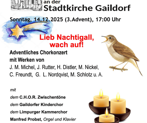 Lieb' Nachtigall wach auf - Konzert zum Advent in der Gaildorfer Stadtkirche 0 Uhr
