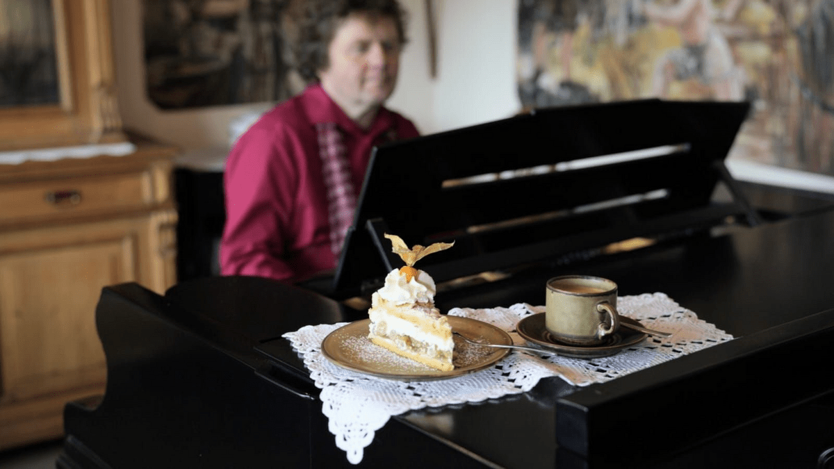 Kaffee und Kuchen mit Klaviermusik