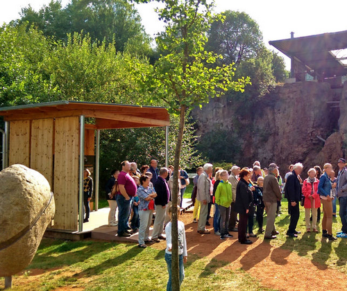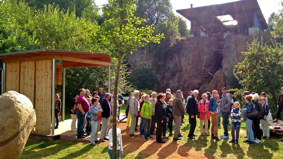 Die Führung beginnt im Infopavillon im Steinbruch an der Korbacher Spalte und endet im benachbarten GeoFoyer Kalkturm Korbach.
