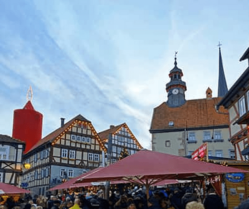 Die Schlitzer Burgenweihnacht ist besonders wegen der größten Kerze der Welt. Der historische Hinterturm der Stadt wird mit rotem Tuch verhüllt und leuchtet als 42 Meter hohe Kerze, die sogar im Guinness-Buch der Rekorde steht. Besucher können mit einem Aufzug im Turm auf die Spitze der Kerze fahren, um einen einmaligen Blick über den malerischen Weihnachtsmarkt zu genießen. Die gesamte Kulisse des Weihnachtsmarktes ist die wunderschöne historische Burgenstadt mit ihren Fachwerkhäusern.