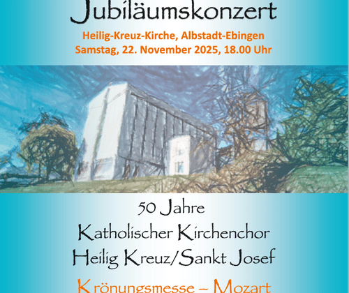 Der Kirchenchor Heilig Kreuz/Sankt Josef feiert dieses Jahr sein 50-jähriges Jubiläum mit einem Festkonzert am Samstag, 22. November um 18.00 Uhr in der Heilig-Kreuz-Kirche in Albstadt-Ebingen. Der Chor wurde am 11. November 1975 von Wolfgang Raichle gegründet, der das Amt des Chorleiters bis Juli vergangenen Jahres innehatte. Im September 2024 trat Kirchenmusiker Hans-Peter Merz seine Nachfolge an. Beim Jubiläumskonzert wird als Hauptwerk die festliche „Krönungsmesse“ von Wolfgang Amadeus Mozart aufgeführt in der Besetzung mit vier Gesangssolisten, Chor, Streichern des Ebinger Kammerorchesters sowie zwei Trompeten und Pauken. Es erklingen weitere Perlen der geistlichen Chormusik. Rudolf Hendel interpretiert Bachs "Toccata und Fuge d-moll".