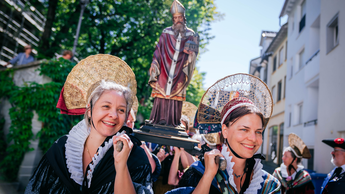 Das Hausherrenfest kann auf eine über 300-jährige Tradition zurückblicken: Seit 1725 wird es jedes Jahr am dritten Sonntag im Juli gefeiert. Das Hausherrenfest kann auf eine über 300-jährige Tradition zurückblicken: Seit 1725 wird es jedes Jahr am dritten Sonntag im Juli gefeiert. Seinen Ursprung hat das Fest in der Verehrung der Heiligen Theopont, Senesius und Zeno, deren Reliquien seit dem 9. und 11. Jahrhundert in Radolfzell aufbewahrt werden. Dadurch entwickelte sich die Stadt früh zu einem bedeutenden Wallfahrtsort am Bodensee. Heute ist das Hausherrenfest ein fester Bestandteil des städtischen Lebens und stärkt Heimatgefühl und Gemeinschaft. Viele Radolfzellerinnen und Radolfzeller kehren dafür in ihre Heimat zurück. Neben weltlichen Festlichkeiten bleibt die feierliche Prozession am Hausherrensonntag mit den Reliquien der drei Schutzpatrone der Höhepunkt. Ein besonderer Brauch ist die Mooser Wasserprozession, die auf ein Gelübde aus dem Jahr 1796 zurückgeht. Damals baten die Mooser in Radolfzell um Schutz vor einer Viehseuche. Seit 1926 pilgern sie alljährlich am Hausherrenmontag mit blumengeschmückten Booten über den See. In Radolfzell werden die Pilger feierlich empfangen und zum Münster Unserer Lieben Frau begleitet.