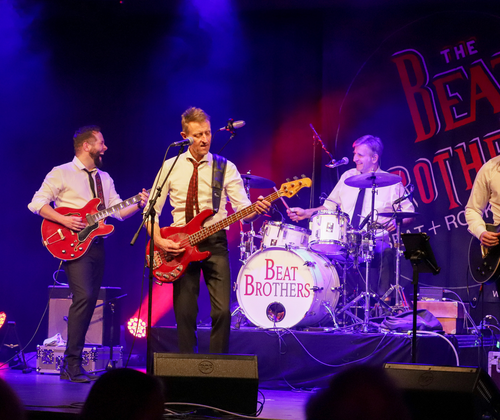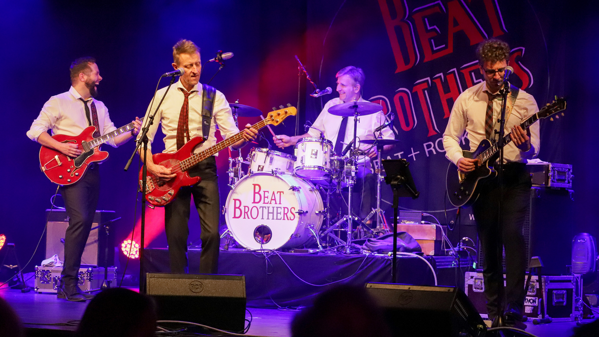 Gitarrenmusik von 1960 bis 1990 Die „Beat Brothers“ entführen ihr Publikum auf eine mitreißende Reise durch die Goldene Ära der Musik – von den 60ern bis zu den 80ern. Tauchen Sie ein in eine Zeit, in der Musik noch eine Revolution war, und lassen Sie sich von den kultigen Klängen vergangener Jahrzehnte verzaubern. Das Konzert verspricht eine einzigartige Mischung aus zeitlosen Hits, die Generationen geprägt haben. Die „Beat Brothers“ werden mit ihrer energiegeladenen Performance und authentischen Interpretationen die Atmosphäre der damaligen Zeit wieder aufleben lassen. Ein Abend, der nicht nur die Nostalgie weckt, sondern auch pure Feierlaune verbreitet. Freuen Sie sich auf eine unvergessliche Zeitreise mit den schönsten Songs der 60er bis 80er – ein Konzerterlebnis, das alle Generationen vereint und das Kino zum Beben bringt! Die vier gut gelaunten Profimusiker geben immer 150 Prozent und überzeugen mit musikalischem Knowhow und andauernder Bühnenpräsenz. Und dazu sehen sie noch blendend aus.