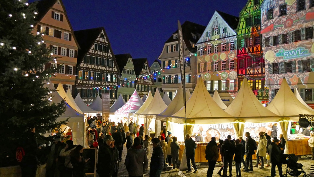 Schokolade verbindet – und genau das macht die Tübinger chocolART zu einem unvergesslichen Erlebnis! Vom 1. bis 6. Dezember 2026 verwandelt sich die historische Altstadt in ein Paradies für Schokoladenliebhaber. Rund 90 exklusive Chocolatiers und Manufakturen aus aller Welt präsentieren ihre feinsten Kreationen – von Italien über Belgien bis nach Ecuador und Peru. Die weißen Pagodenzelte und ihr süßer Inhalt machen Tübingen sechs Tage zum schönsten Mittelpunkt des Genusses. Schokoladenliebhaber aus nah und fern lassen sich verzaubern, folgen den sahnig-herben Düften und begeistern sich für schokoladige Besonderheiten. Im chocolateROOM auf dem Marktplatz entstehen live filigrane Schokokunstwerke, darunter der beliebte Tübinger Schokoschaumkuss chocoLINO. Schokoladenkunst hautnah erleben? Das geht auch bei Dorte Schetters Kakaomalerei, wo Tradition auf Kreativität trifft. Die Projektionskünstler des Tübinger Lichtkunstateliers „leucht-werk“ sorgen für eine märchenhafte Altstadt-Beleuchtung. Die Fassaden verwandeln sich durch kunstvolle Illuminationen in eine traumhafte Kulisse. Di 13–20 Uhr / Mi bis Fr 10–20 Uhr / Sa 10-22 Uhr / So 11-18 Uhr Mit dem Sondertagesticket können (Mo – Fr ab 8:30 Uhr, sonst ganztägig) bis zu 5 Personen um ca.30 % günstiger als mit dem Tagesticket Gruppe bis Betriebsschluss im Stadtgebiet Tübingen unterwegs sein. An den ticketfreien Samstagen sind Fahrten innerhalb des Stadtgebietes Tübingens auf allen TüBus-Linien, der Ammertalbahn und den Linien 826/828 von 0.00 Uhr bis Sonntag 5.00 Uhr kostenlos. An diesem Tag brauchen Fahrgäste, die die ticketfreien Linien nutzen, kein Sondertagesticket zu lösen.