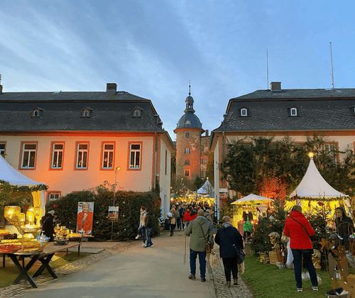 Dieses Jahr gleich zwei Wochenenden Winterzauber: Vom 16. bis 19. Oktober und vom 23. bis 26. Oktober 2025! Die gräfliche Familie zu Solms-Laubach öffnet ihre Tore und lässt Schloss Laubach in vorweihnachtlichem Lichterglanz erstrahlen. Das illuminierte Schloss, mit Sternen und Girlanden geschmückte Pagodenzelte und liebevoll inszenierte Stände verleihen dem Markt seinen märchenhaften Charme.