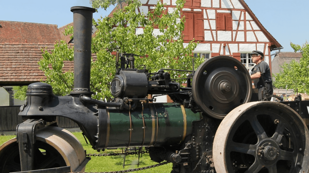 Erleben Sie die Spitzentechnologie des 19. Jahrhunderts: Mit Dampfkraft schnauben Walzen und Traktoren durchs Museum, Lokomobile treiben Dreschmaschine und Steinbrecher an. Besonders beliebt bei den Kindern sind die Mini-Dampfbahnen des Schwäbischen Eisenbahnvereins e.V. Historische Dampfmaschinen im Einsatz Auf dem gesamten Museumsgelände präsentieren sich über 100 Jahre alte Dampfwalzen, Dampftraktoren und Lokomobile im Museumsdorf. Erleben Sie, wie diese Stahlkolosse durchs Museumsdorf rollen und auch zum Einsatz kommen. Samstag ab ca. 11.30 Uhr, Sonntag ab ca. 10.30, jeweils bis ca. 17 Uhr Essen & Trinken Das Dorfcafé, die Freiwilligen Feuerwehr Bad Schussenried und der Schwäbische Eisenbahnverein e.V. sorgen für das leibliche Wohl. Der Museumsbäcker verwöhnt Sie mit Köstlichkeiten aus dem historischen Backhäusle. Der Museumsförderverein dämpft Kartoffeln frisch im historischen Kartoffeldämpfer. Die Damen von Service Direkt bieten köstliche Dampfnudeln aus der historischen Küche an.