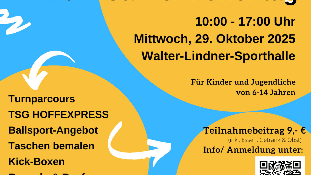 Der mehralssporttag ist ein Angebot für Kinder und Jugendliche im Alter von 6 bis 14 Jahren, bei welchem die Möglichkeit geboten wird, sich in unterschiedlichen Sportarten auszuprobieren, mitzumachen und hauptsächlich Spass zu haben.Beim mehralssporttag wird es folgende Angebote geben: Turnparcours, TSG Hoffeexpress, Ballsportangebote, Taschen bemalen, Kickboxen, rangeln und raufen, Floorball u.v.m.