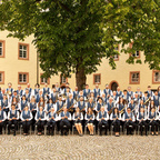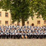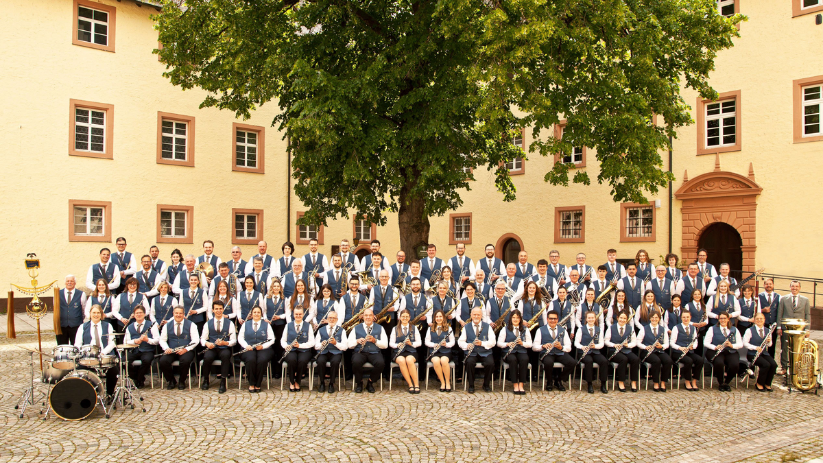 vor dem Rathaus. Bei Regen findet das Konzert in der Schlosshalle statt.