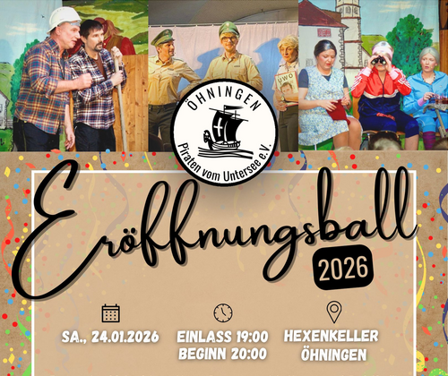 **Eröffnungsball** **24.01.2026** **Beginn:** 20:00 Uhr **Einlass:** ab 19:00 Uhr **Ort:** Hexenkeller, Öhningen Freut euch auf **Schäufele**, ein **kleines Programm** und die **Narrenmusik Radolfzell**!